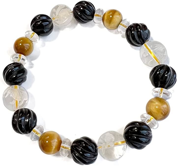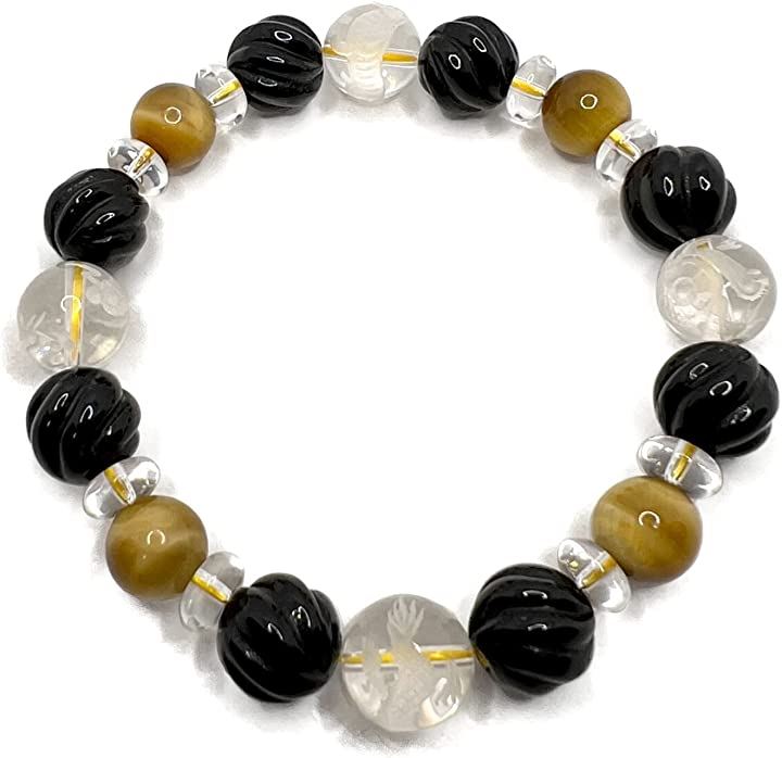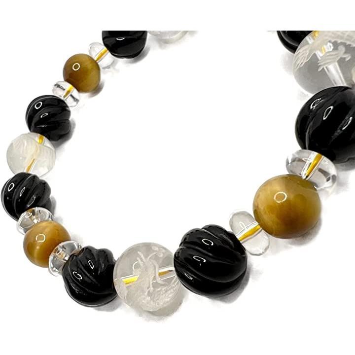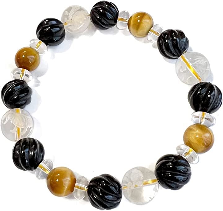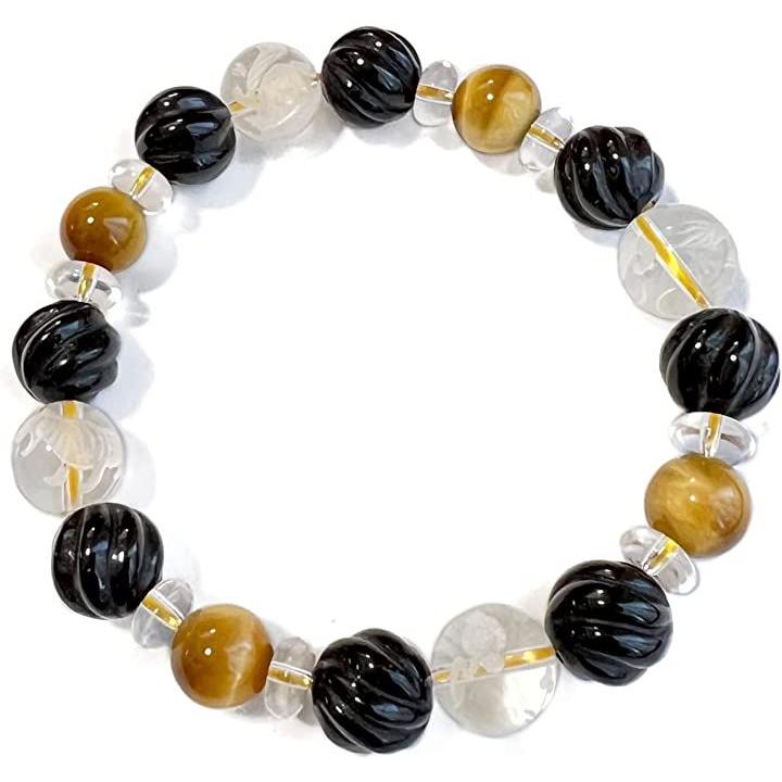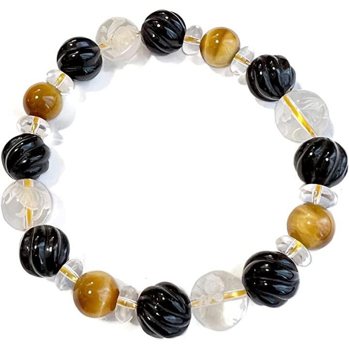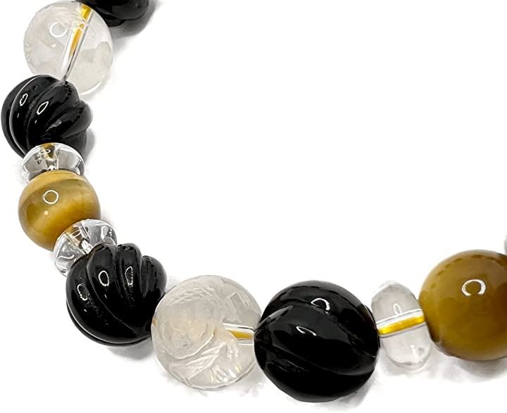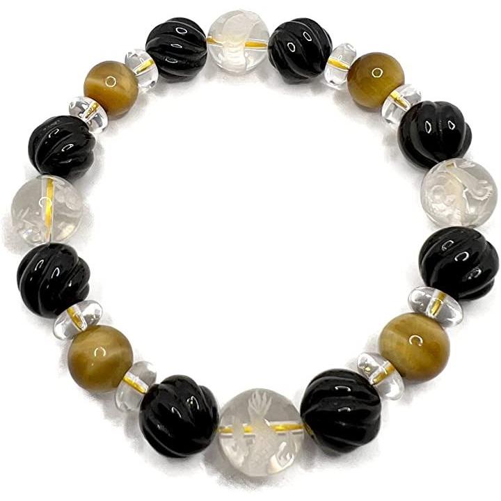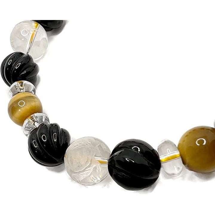 天然石 タイガーアイ ウェーブデザインオニキス 水晶 四神彫刻 男女兼用ブレスレット 虎目石10mm tiger-br2