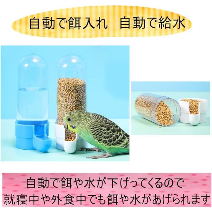 鳥用 自動給餌器 2個セット 水入れ 飛び散らない 固定具付き 餌入れ