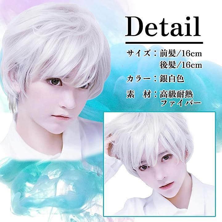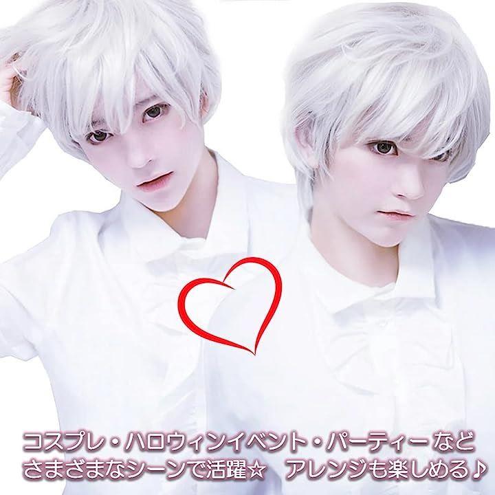 かつら ショート ウイッグ 銀白色 フルウィッグ ウィッグネット付 COS007