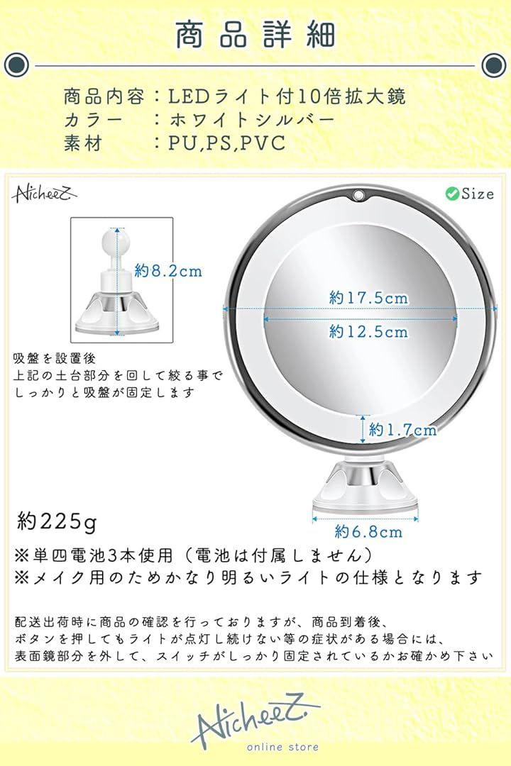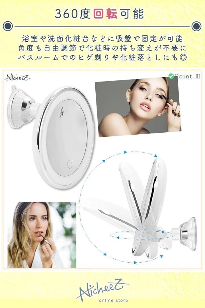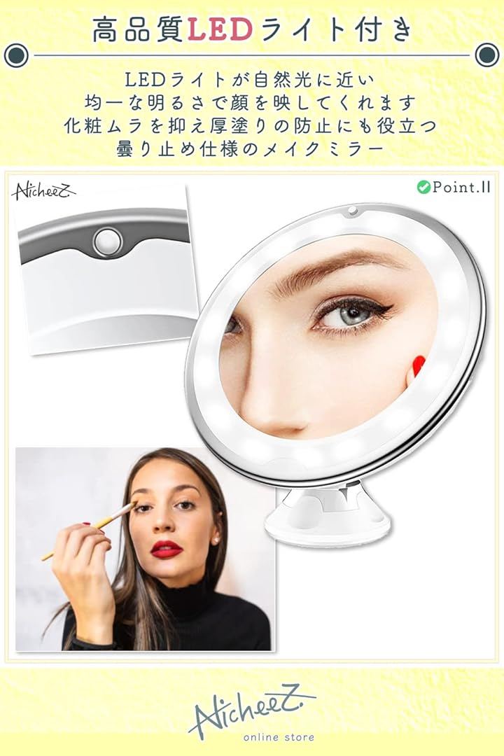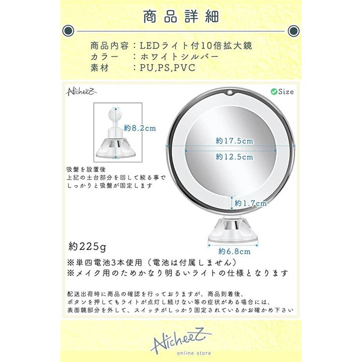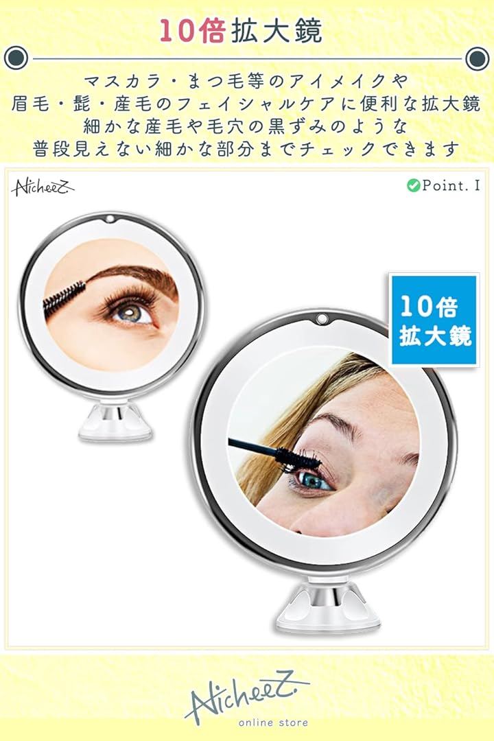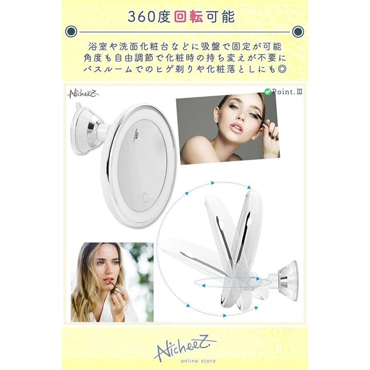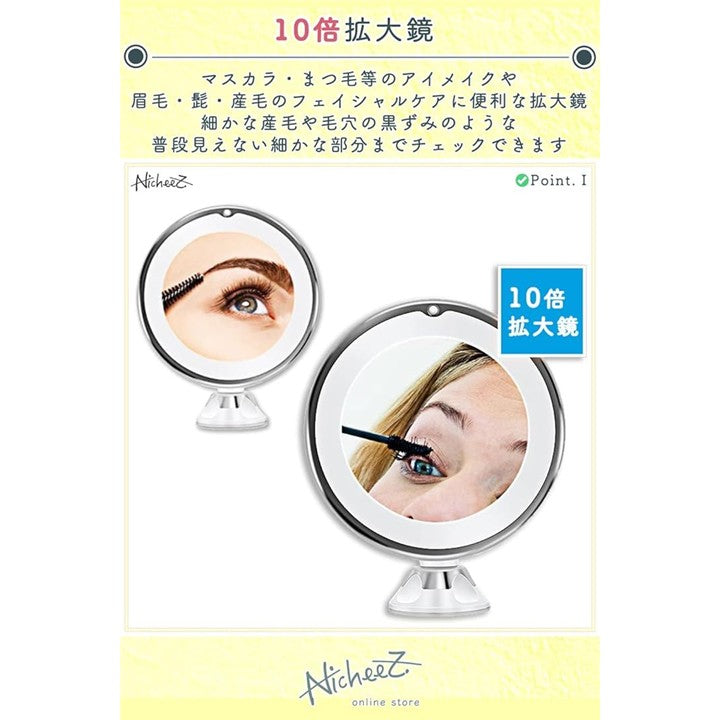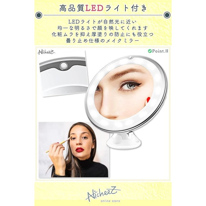 10倍拡大鏡 LED化粧鏡 吸盤ロック 卓上 メイクミラー