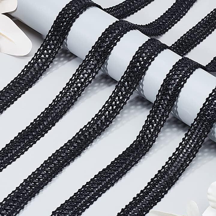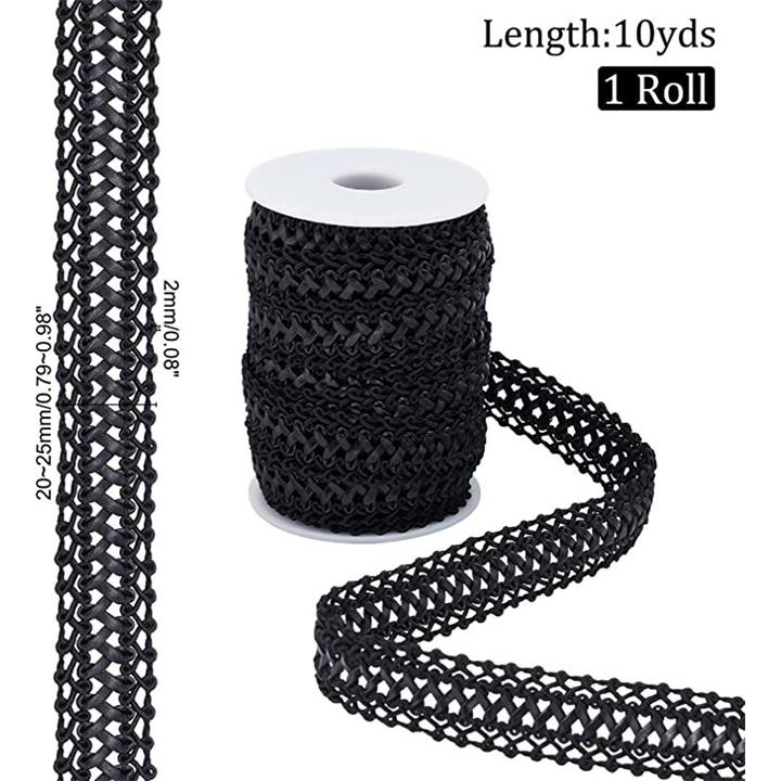 互換品 レースリボン 幅20-25mm オーガンジーリボン ウェディングドレス・カーテン・靴・バッグ・衣類装飾用リボン 手芸用 材料 ブラック 長さ9.1m