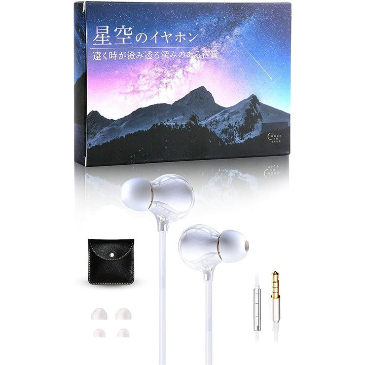 MOON IN BLUE 星空のイヤホン ( 寝ホン 睡眠用イヤホン ASMR ) 睡眠/asmrのための繊細で深みのある音質 寝ながら 耳が痛くならない 有線 マイク付き (ホワイト) |