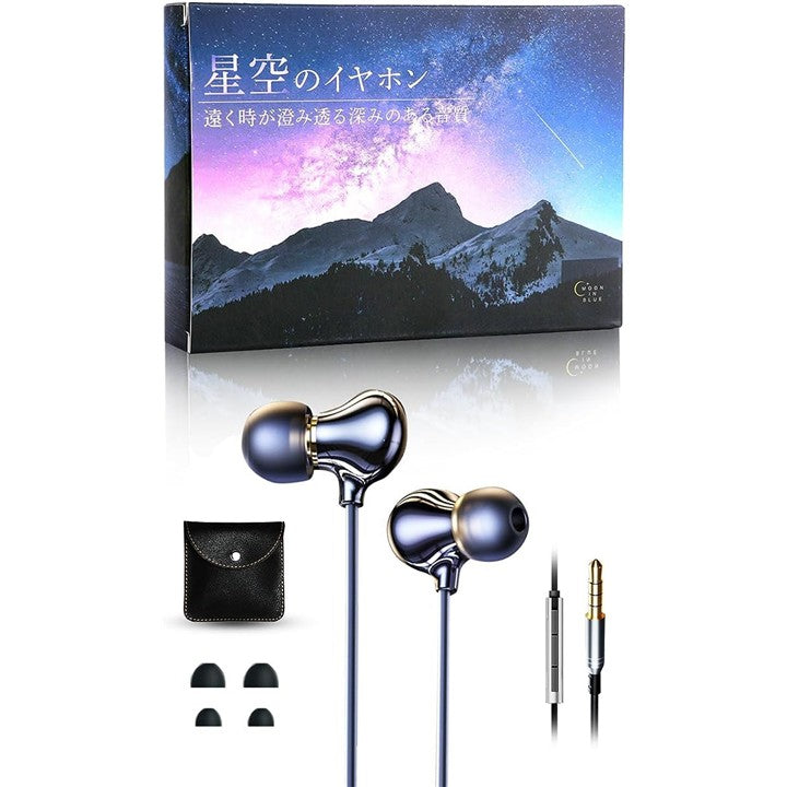 MOON IN BLUE 星空のイヤホン ( 寝ホン 睡眠用イヤホン ASMR ) 睡眠/asmrのための繊細で深みのある音質 寝ながら 耳が痛くならない 有線 マイク付き (ブラック) |