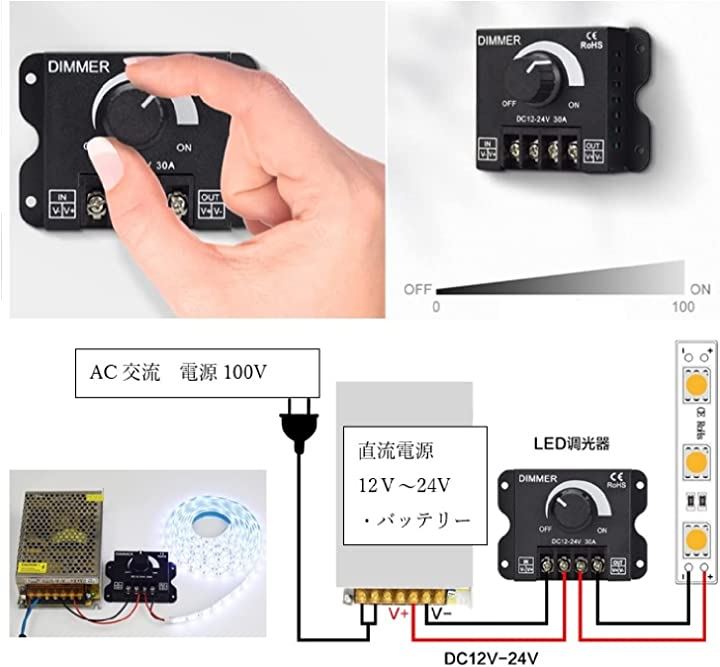 LED調光器 調光スイッチ DC12-24V 30A ディマースイッチ ボリューム式