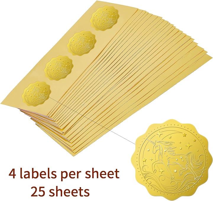 100枚 ステッカー 金箔エンボス加工 豪華 招待状 封筒 証書 賞状 飾り ごほうびシール メダル
