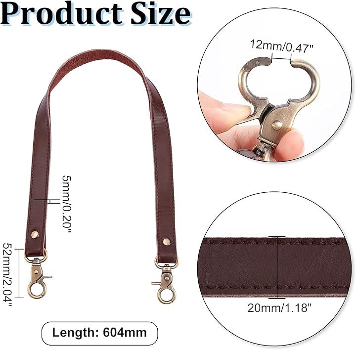 本革 持ち手 2本入り かばん用 着脱式 金具つき バッグ用ハンドル 修理用 交換用 付け替え 皮革ストラップ 手芸用品 手作り素材 茶 604x20mm