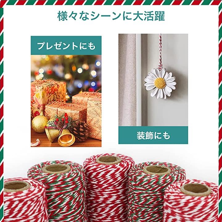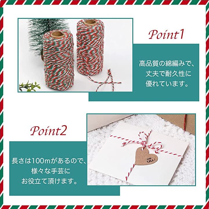 Rajjo綿ひも ラッピング 紐 ロープ リボン コットンコード クリスマス ギフト 2色セット