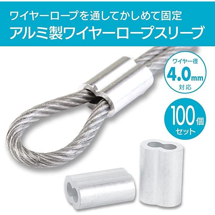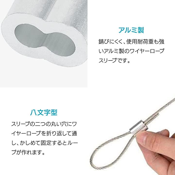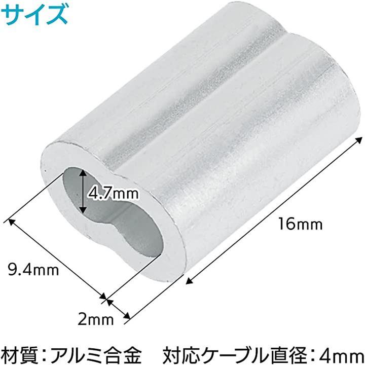 ワイヤーロープスリーブ アルミスリーブ 八字型 アルミクランプ管 ワイヤーロープ用 かしめ機固定 4.0mm100個セット