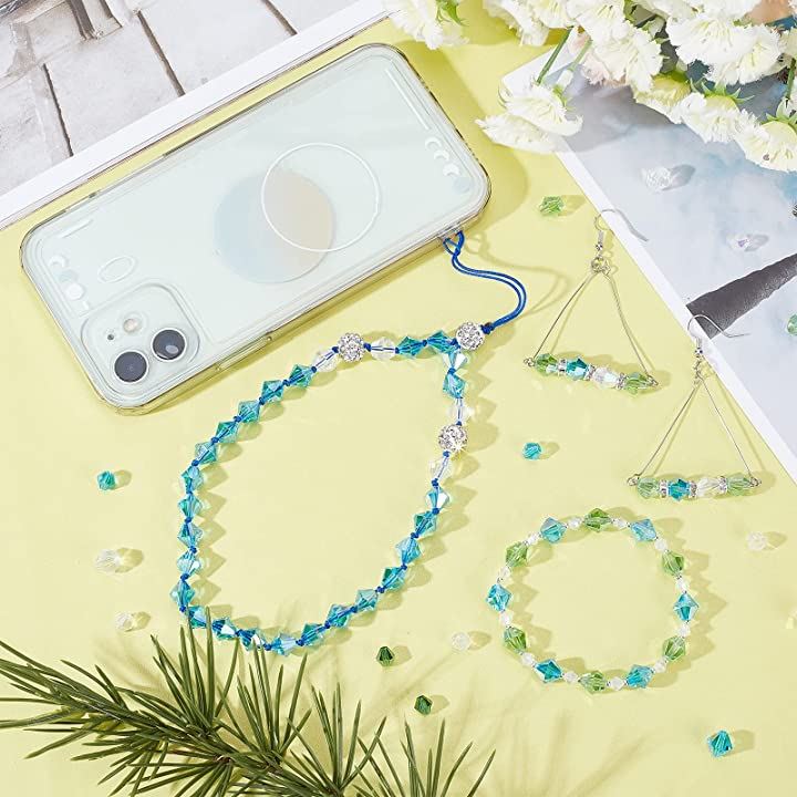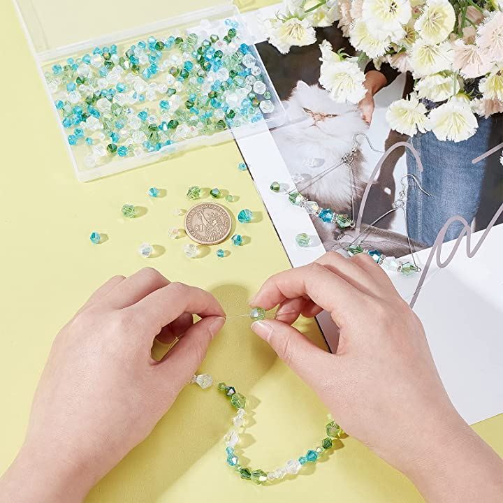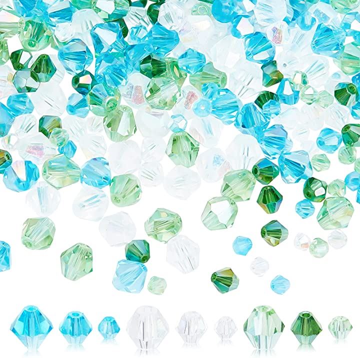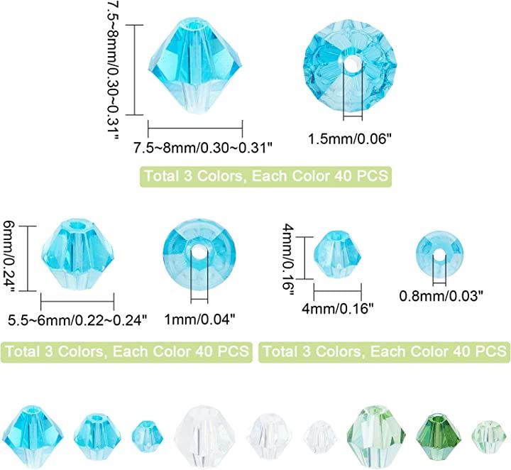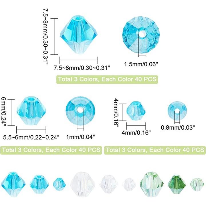 PH Pandahall ガラスビーズ 約360個 クリスタルビーズ 多面的 カットビーズ 双円錐形 3サイズ 4~8mm