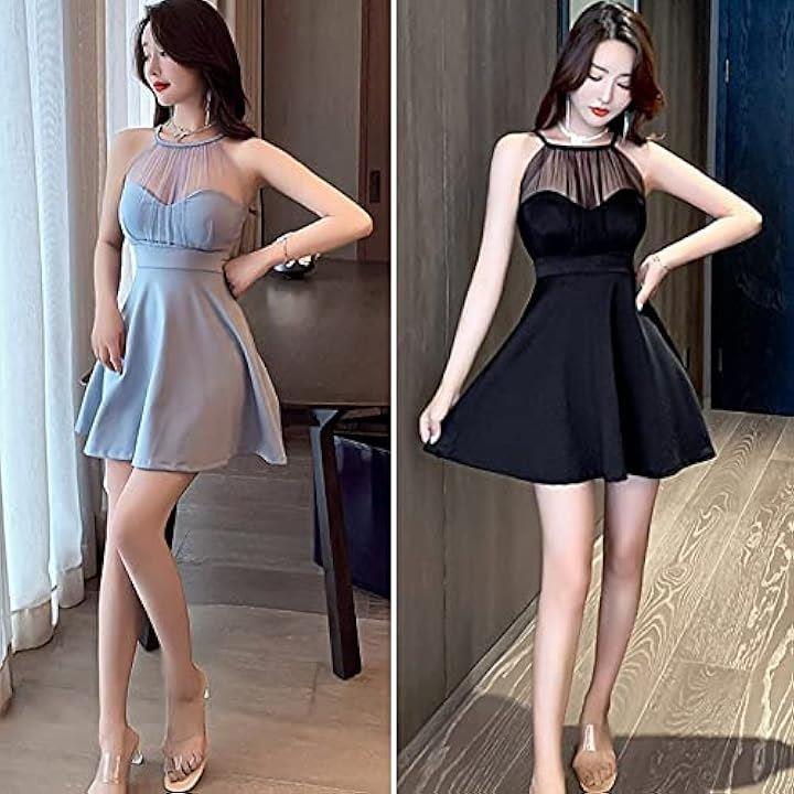 キャバドレス ミニドレス クラブドレス パーティードレス ワンピース フレア シースルー ベアトップ リング オフショルダー ノースリーブ ウエストマーク