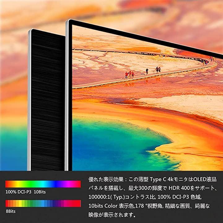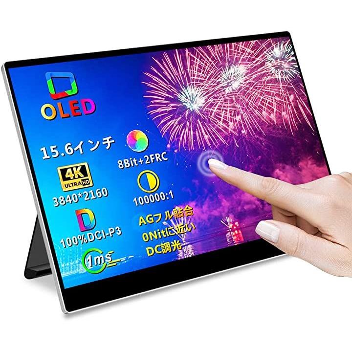 互換品有機el モバイルモニター 4k タッチパネル 15.6インチ OLED モバイルディスプレイ Eleduino 非光沢 DCI-P3 100%色域 Bit表示色 USB Tpye-C/標準 HDMI Mini DP 収納式スタンド