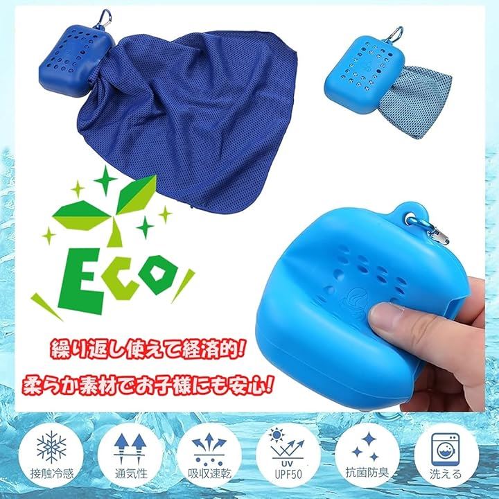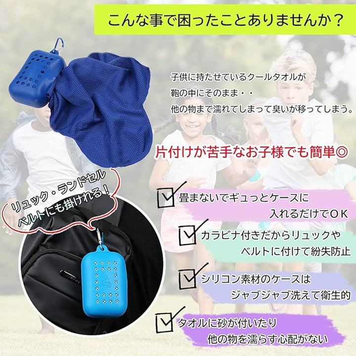 冷感タオル らくらく 簡単 収納ケース 付 子ども セット ひんやりタオル 部活 スポーツタオル 首 軽量 速乾 登山 熱中症対策