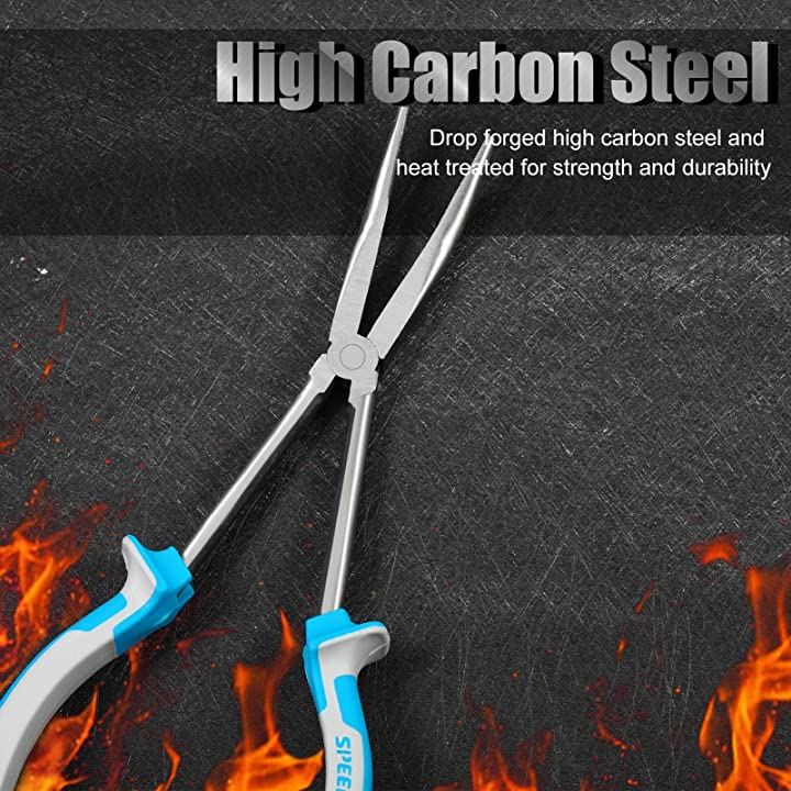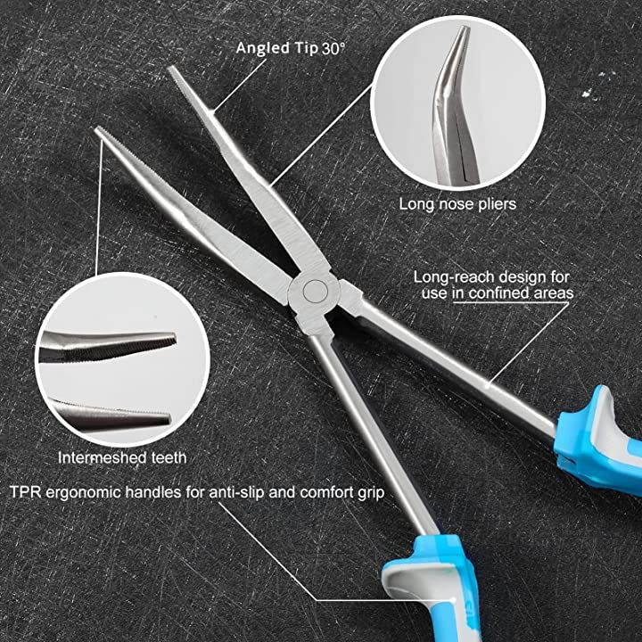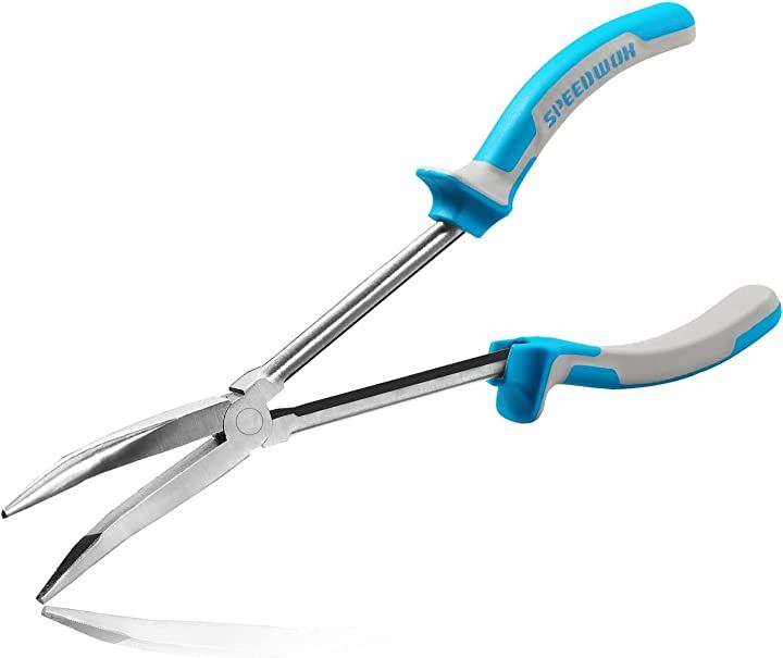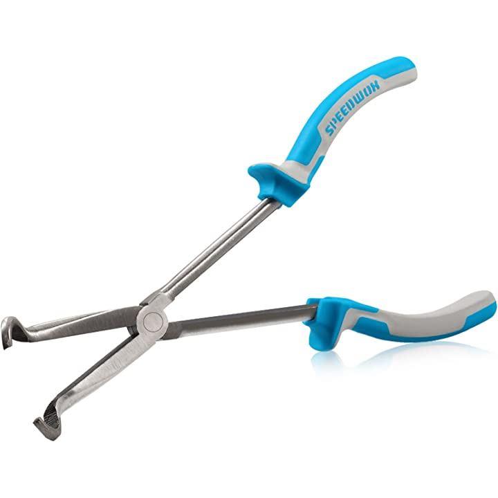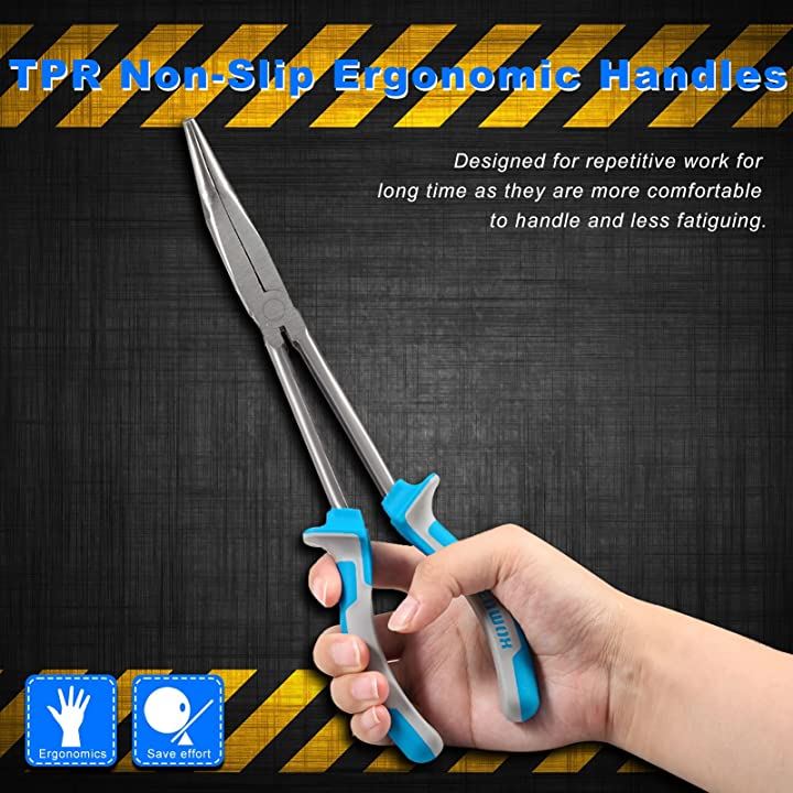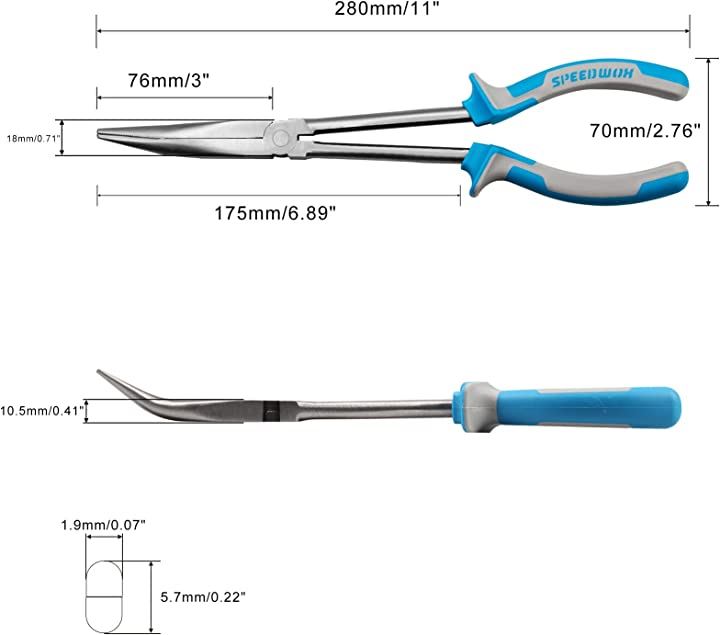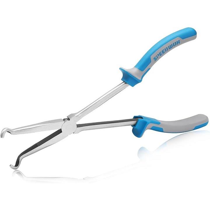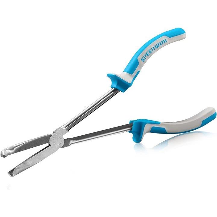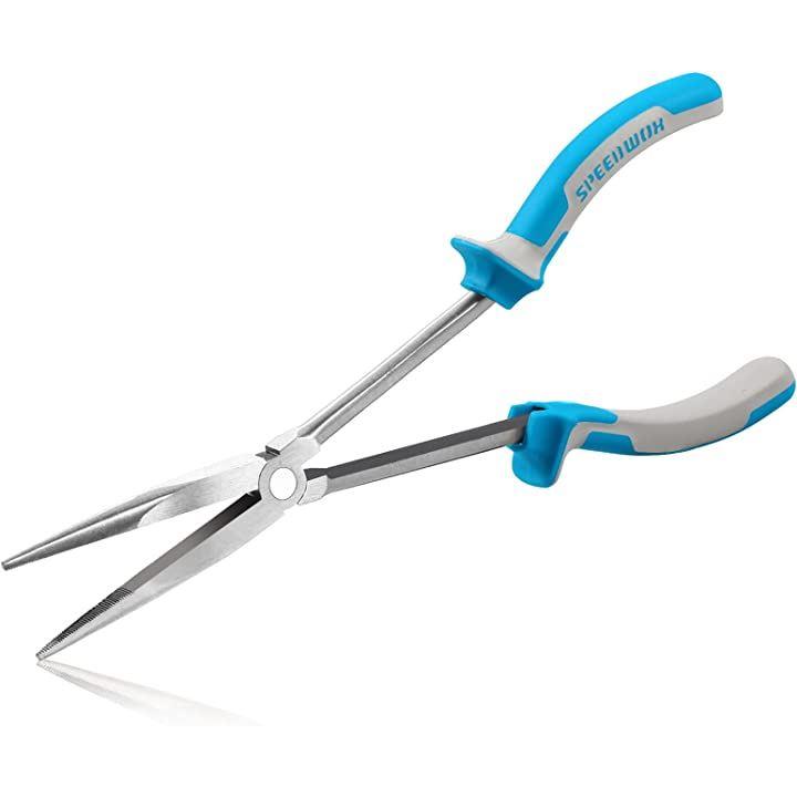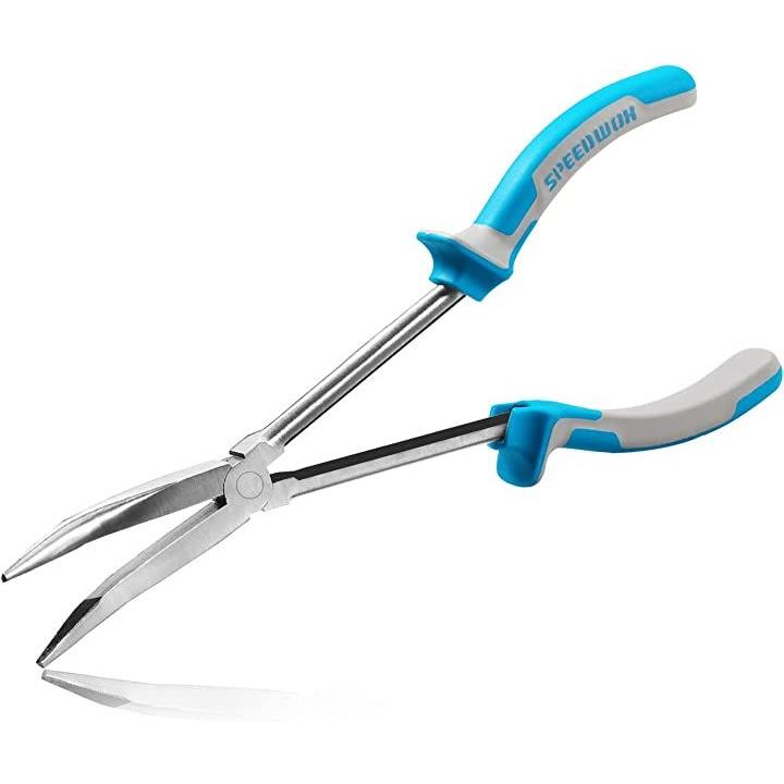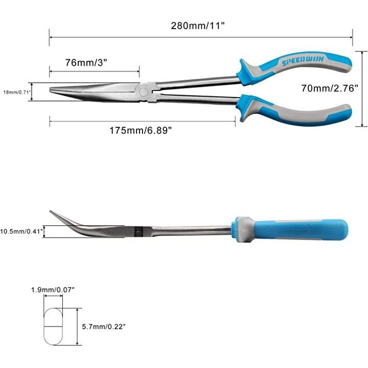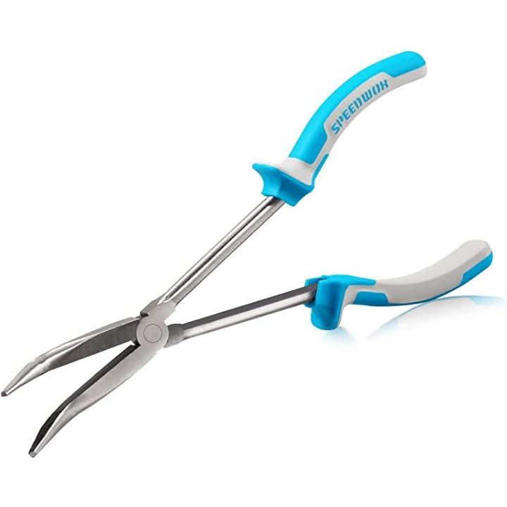 SPEEDWOX 超ロングホースプライヤー 30° 先曲がりラジオペンチ ギザ付 メカニックプライヤー 先曲がりペンチ 280mm 自動車 バイク 整備工具 パソコンパーツ 機械類 交換 滑り止めTRPハンドル
