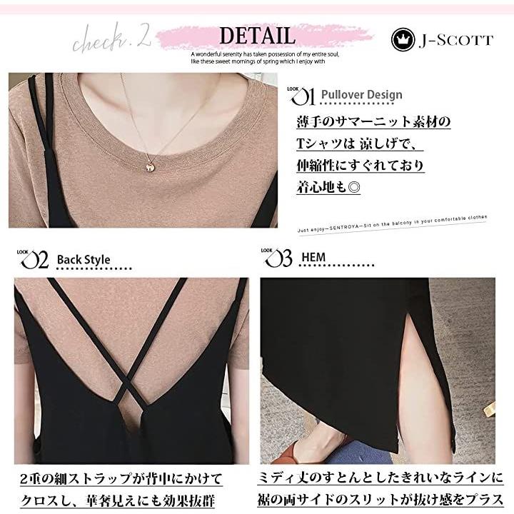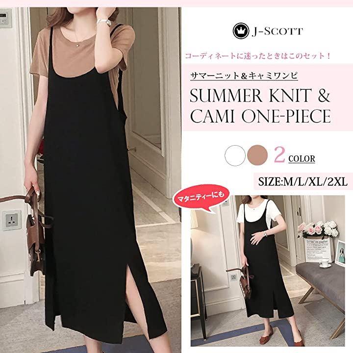[ジェイスコット] セットアップ 上品 キャミワンピ サマーニット ミディ丈 バッククロス |