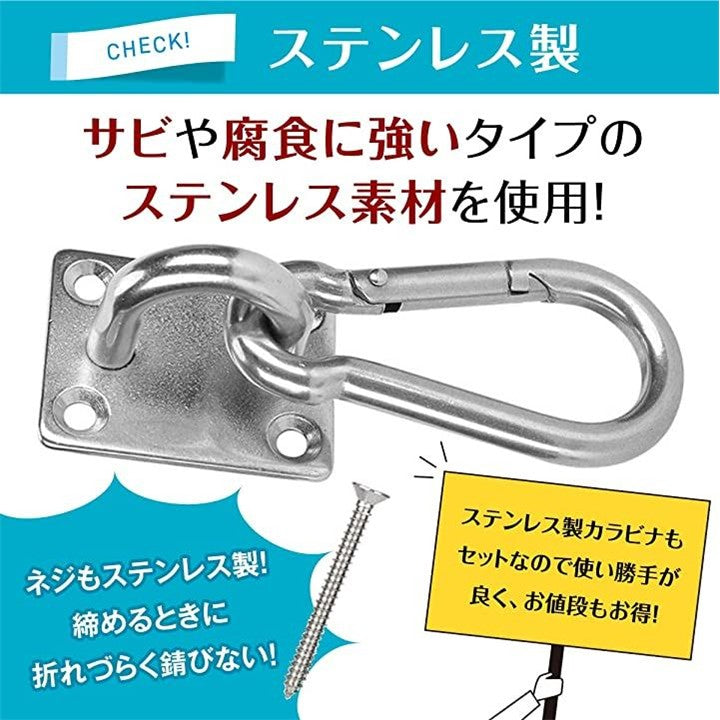 アイプレート パッドアイ カラビナ4個セット 日除け サンシェード セイル 取り付け金具 ステンレス製 日差し タープ おしゃれ