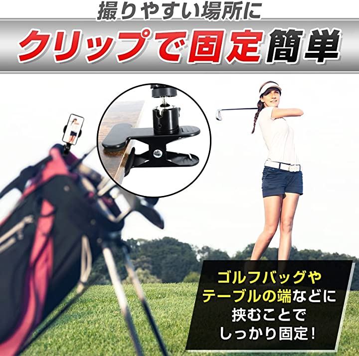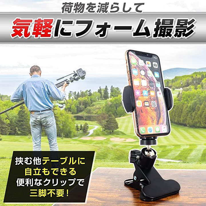 練習撮影用 スマホホルダー スタンド スイング 姿勢確認 クリップ完備 自立可能 360度角度調節可能