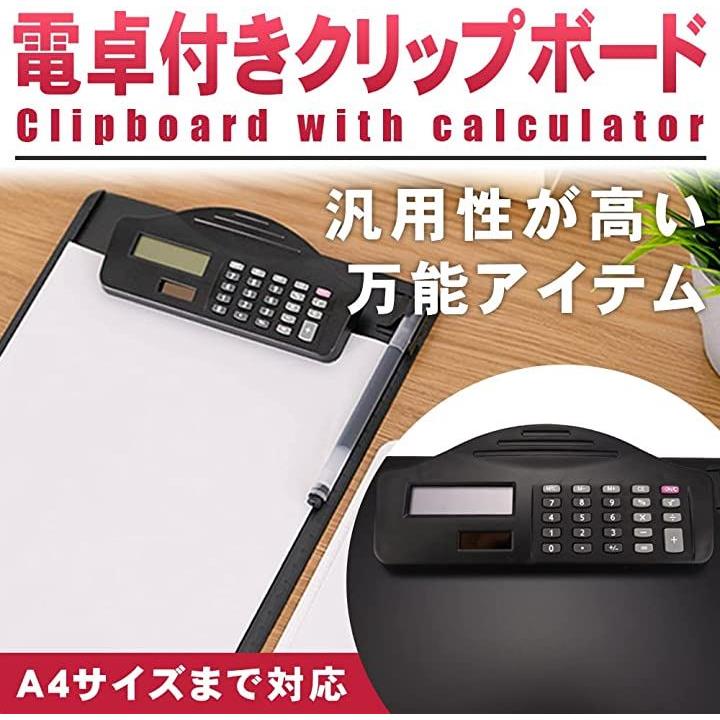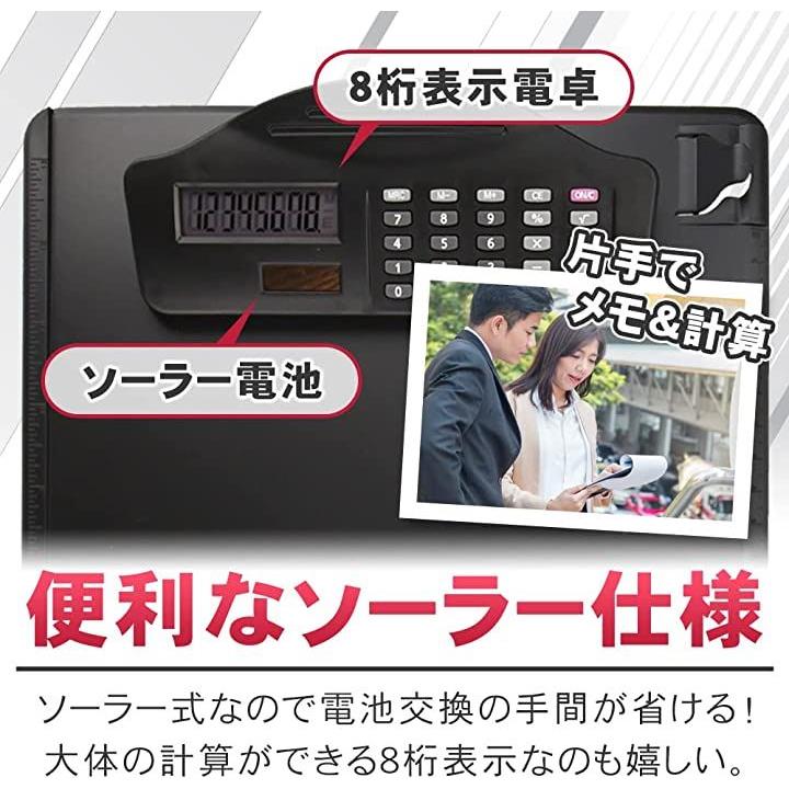 互換品クリップボード バインダー 電卓一体型 8桁 ソーラー仕様 A4サイズ オフィス 学校 会議