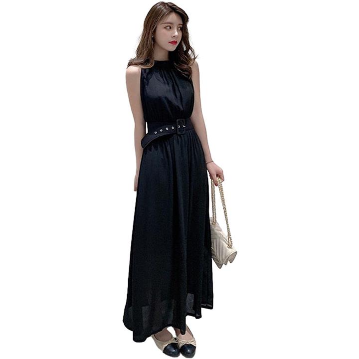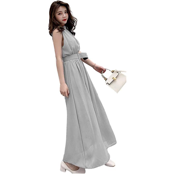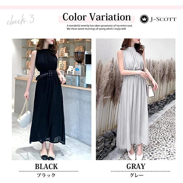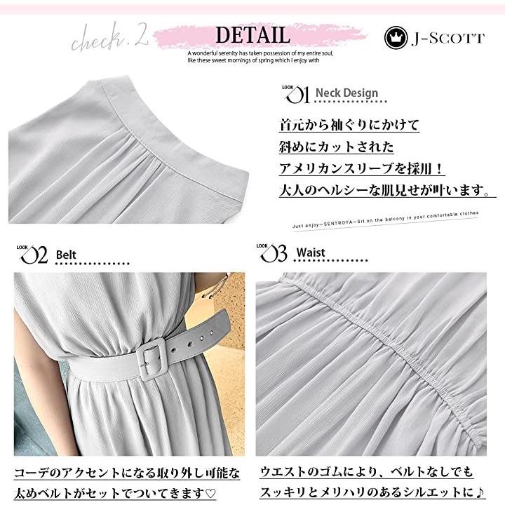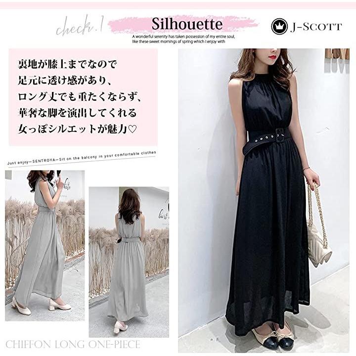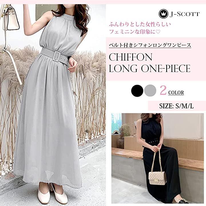 [ジェイスコット] ロング シフォン ワンピース 同布ベルト付き 裏地あり アメリカンスリーブ |