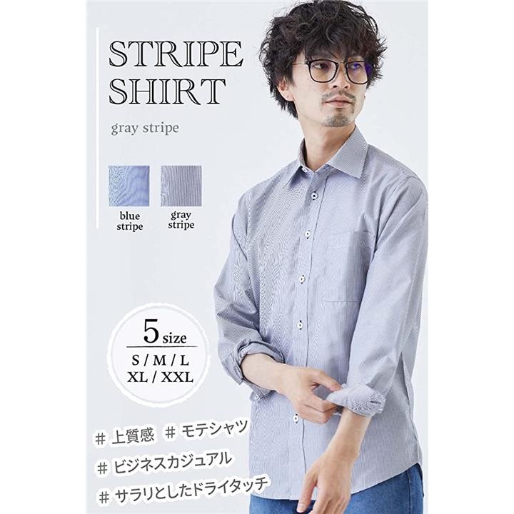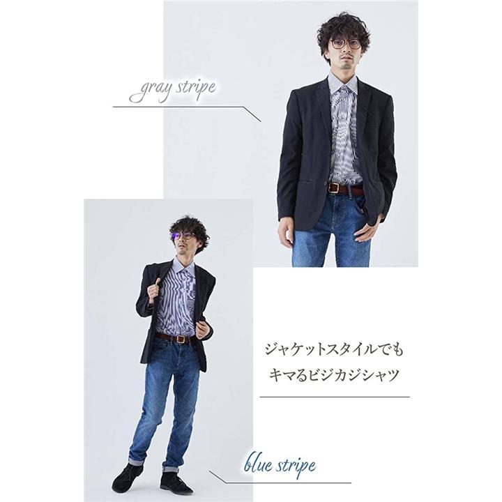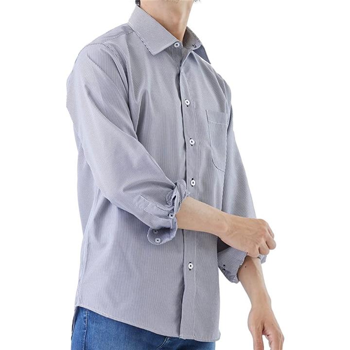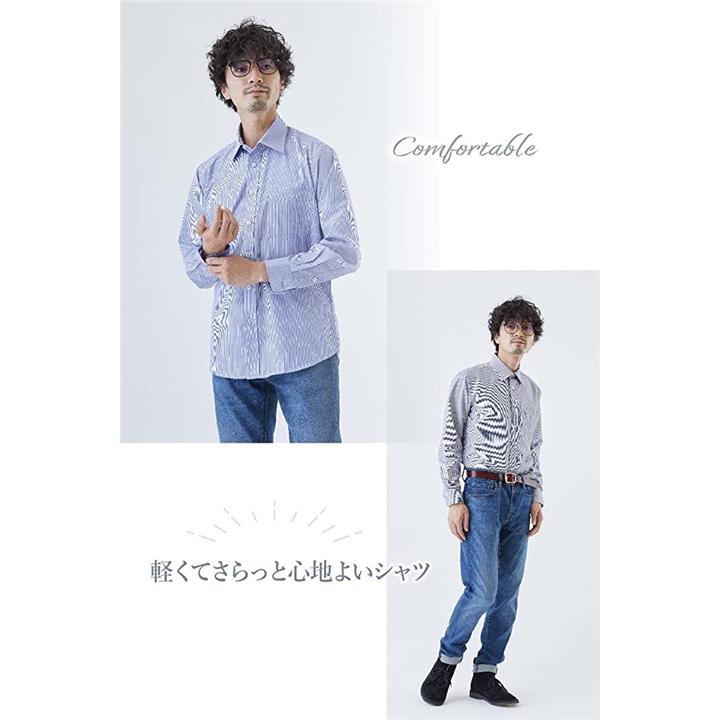 [バレリア] valeria シャツ メンズ ストライプ 長袖シャツ ビジネス カジュアル レギュラーサイズ メンズシャツ |