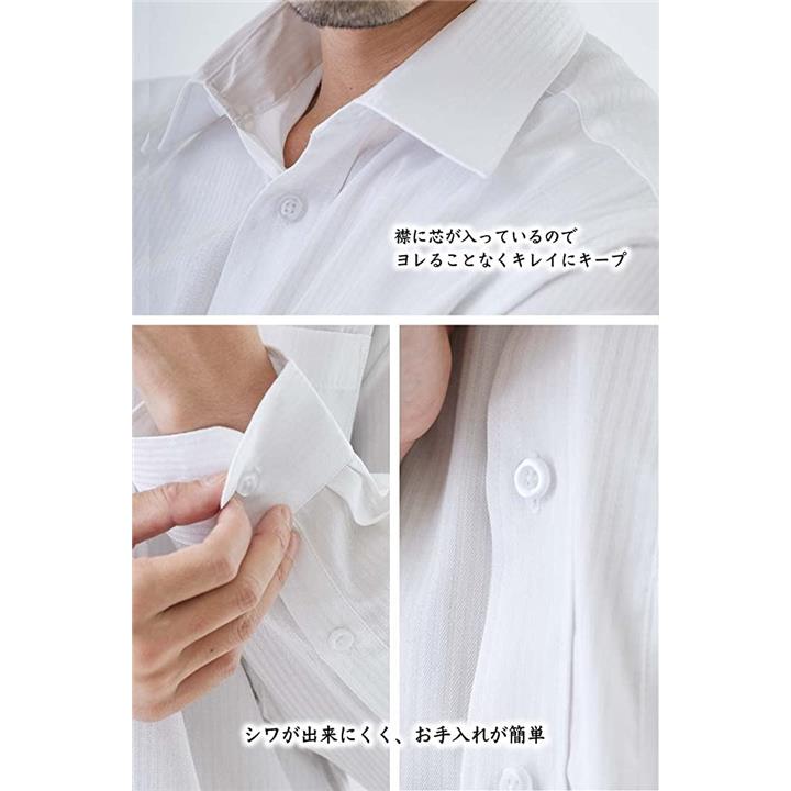 ドビー織がキレイなストライプとなっており、普通の白シャツよりも生地に上質感があります。