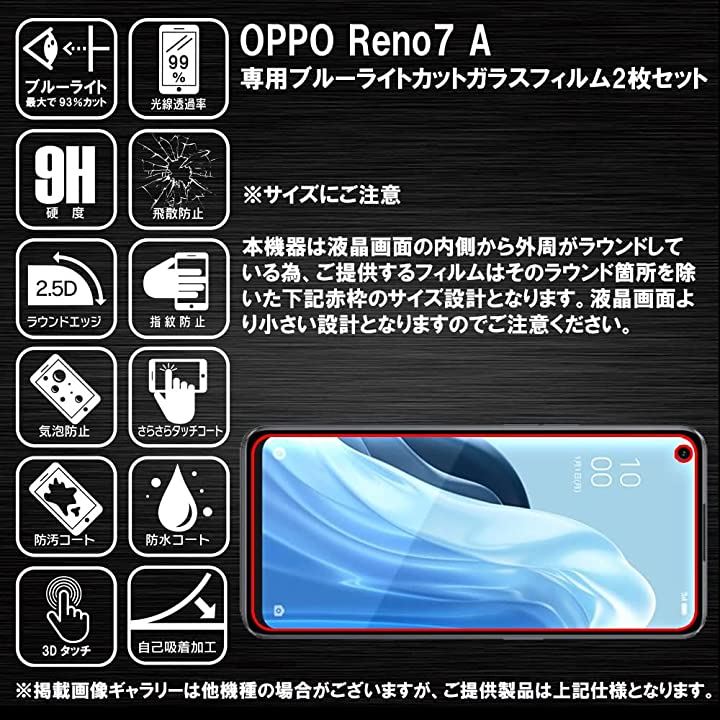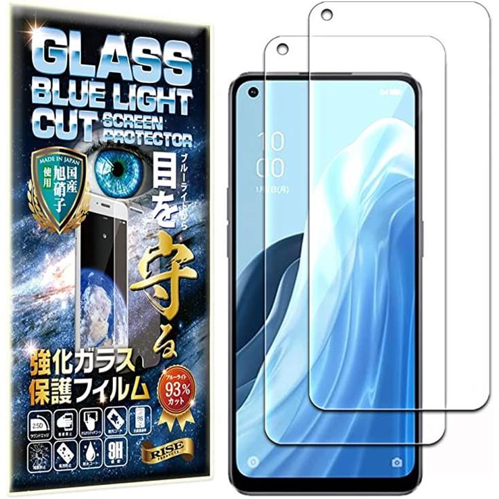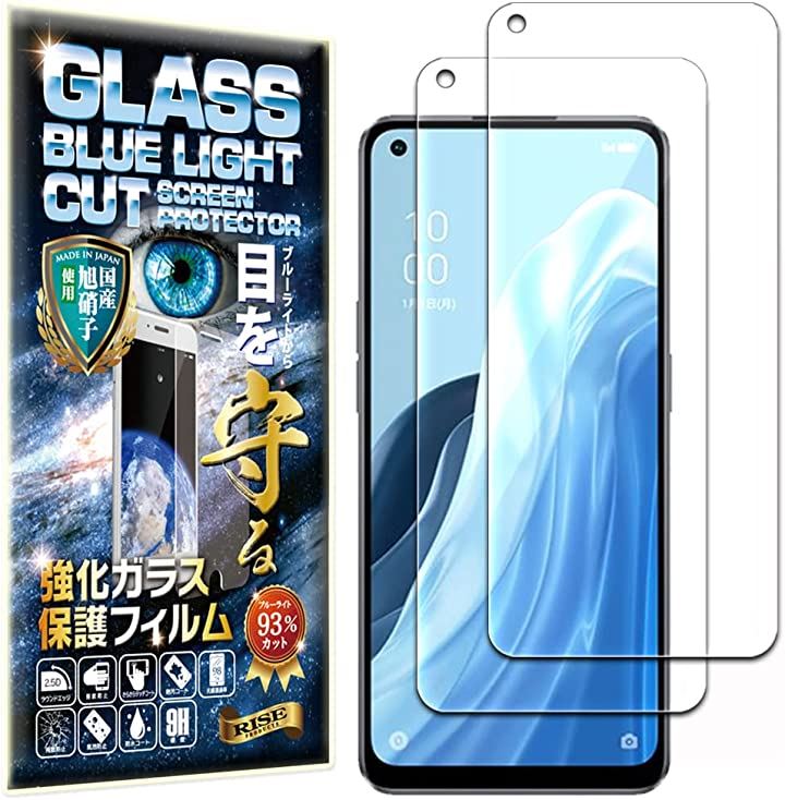 ブルーライトカット 93%2枚 RISE ガラスフィルム OPPO Reno7 A 用 保護フィルム OPG04 対応