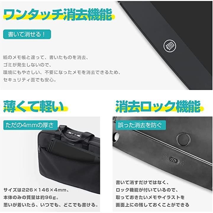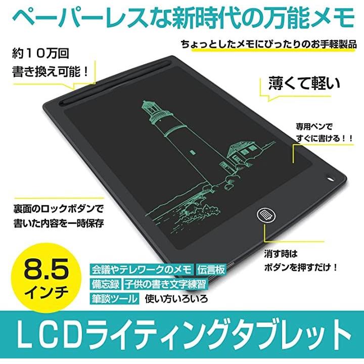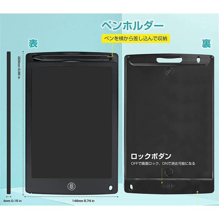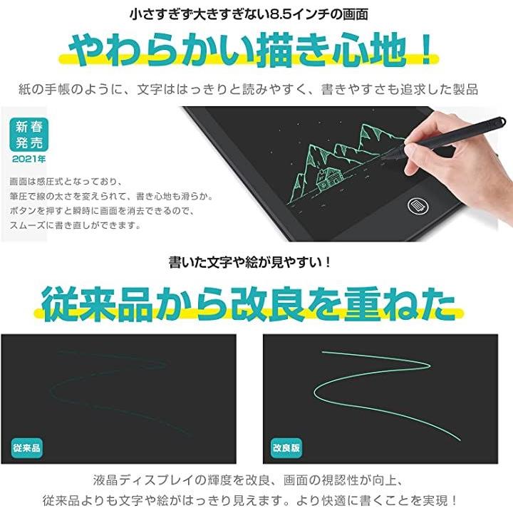 互換品電子メモ 何度も書いて消せる 電子パッド 筆圧対応 8.5インチ ブラック