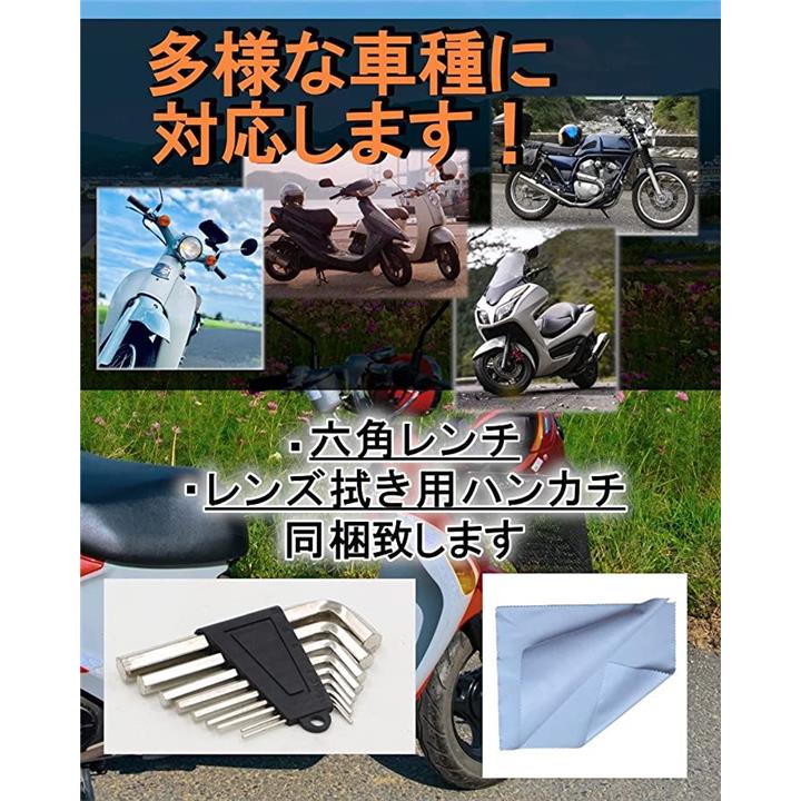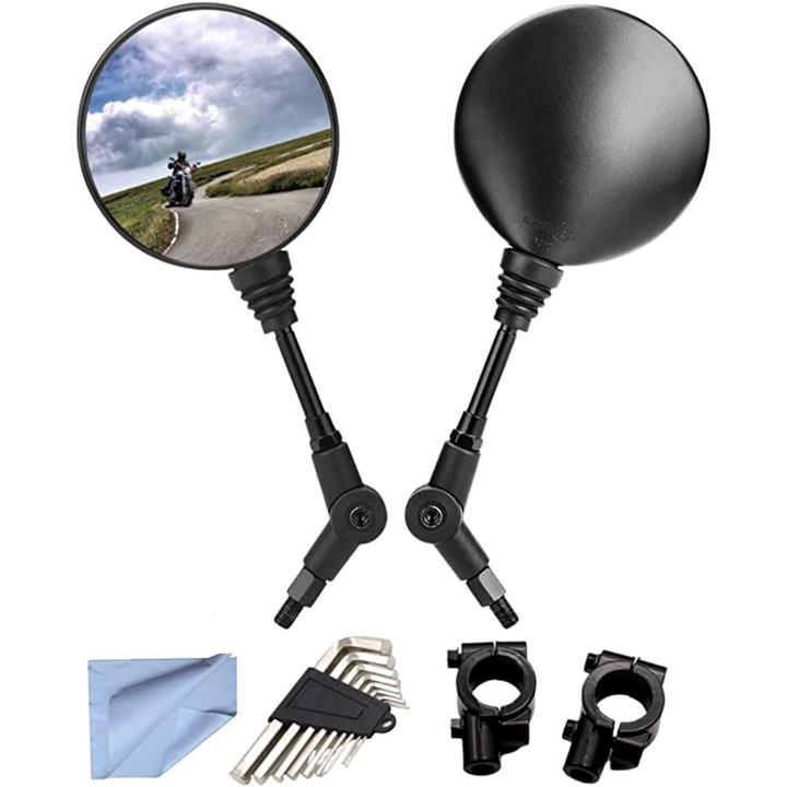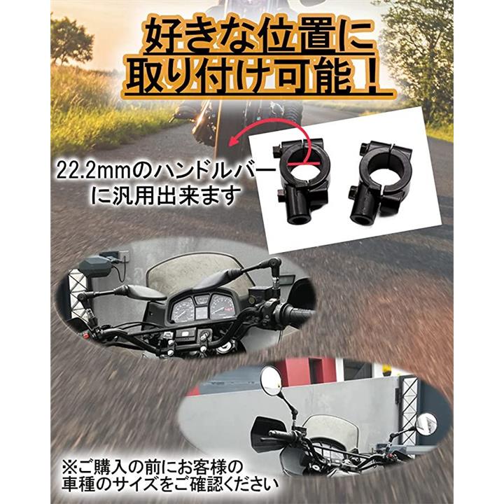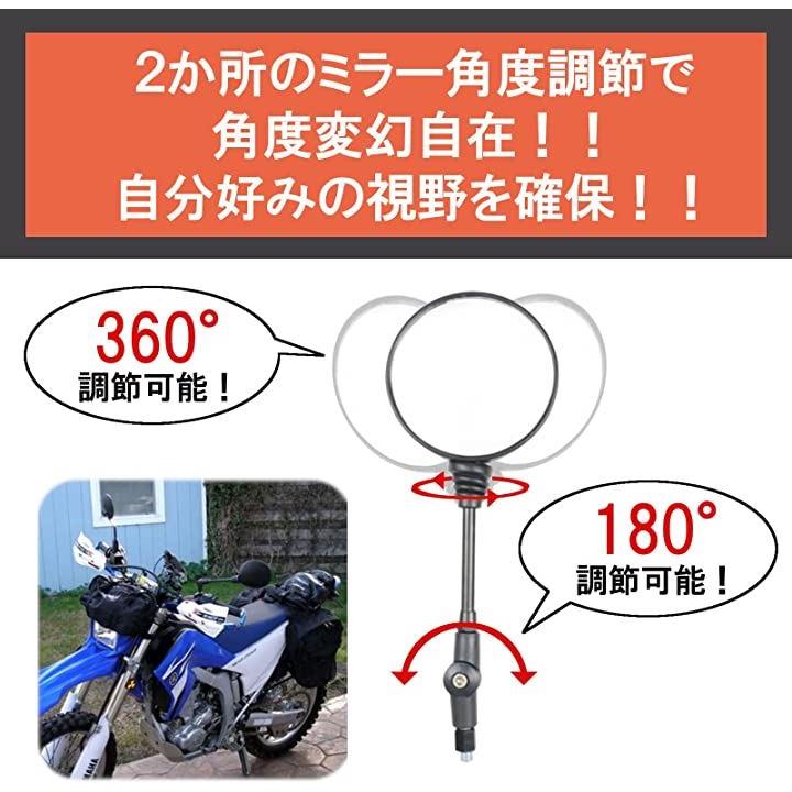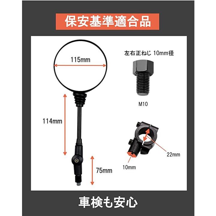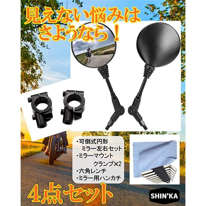 互換品SHIN’KA バイクミラー 10mm 左右セット 4点セット 正ネジ オフロードミラー ミラーホルダー 折りたたみ 丸型 汎用 カブ 車検対応