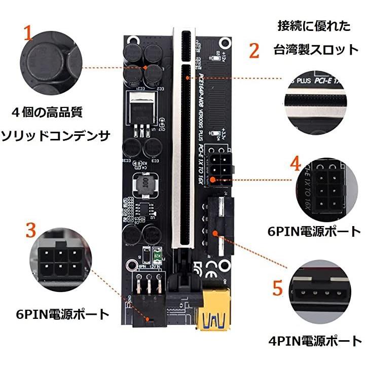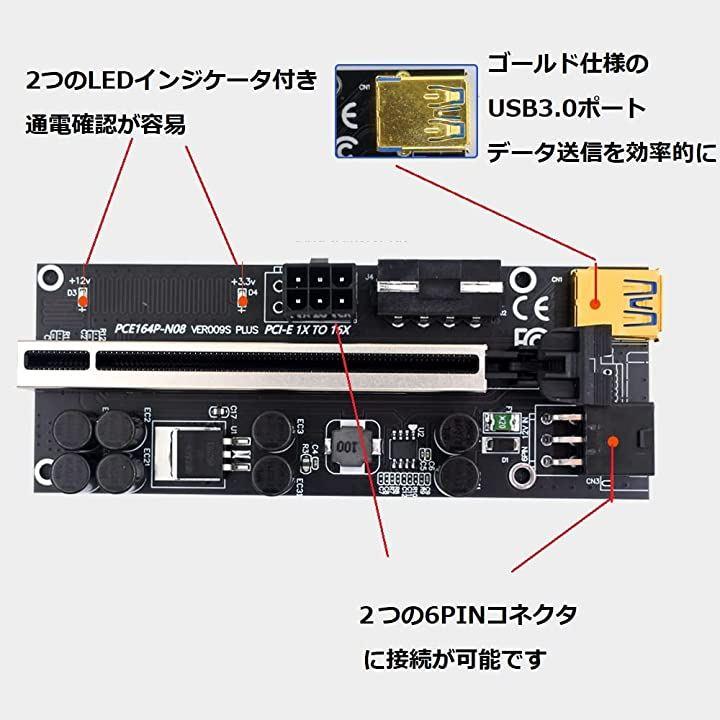 互換品ライザーカード 6個 セット 最新 009S マイニング pcie x1 x4 x8 x16 60cm 延長 6pin 電源ケーブル ビットコイン 補助電源複数 USBケーブル サンプル