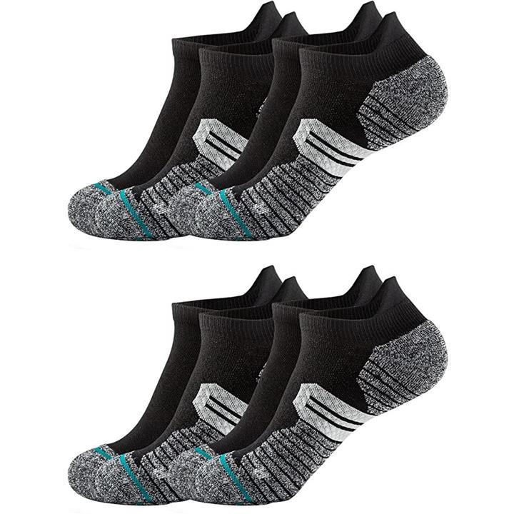 HEWOLF 靴下 メンズ スポーツソックス くるぶし ショート ソックス 臭わない 高級綿 通気性 抗菌防臭 吸汗速乾 レディース 左右別 24~28cm 4足セット ブラック |