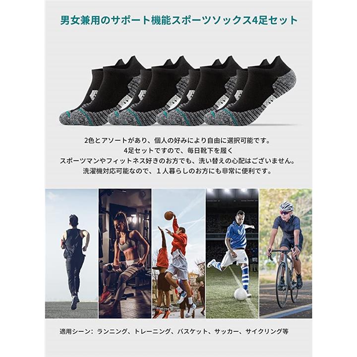 HEWOLF 靴下 メンズ スポーツソックス くるぶし ショート ソックス 臭わない 高級綿 通気性 抗菌防臭 吸汗速乾 レディース 左右別 24~28cm 4足セット アソート |