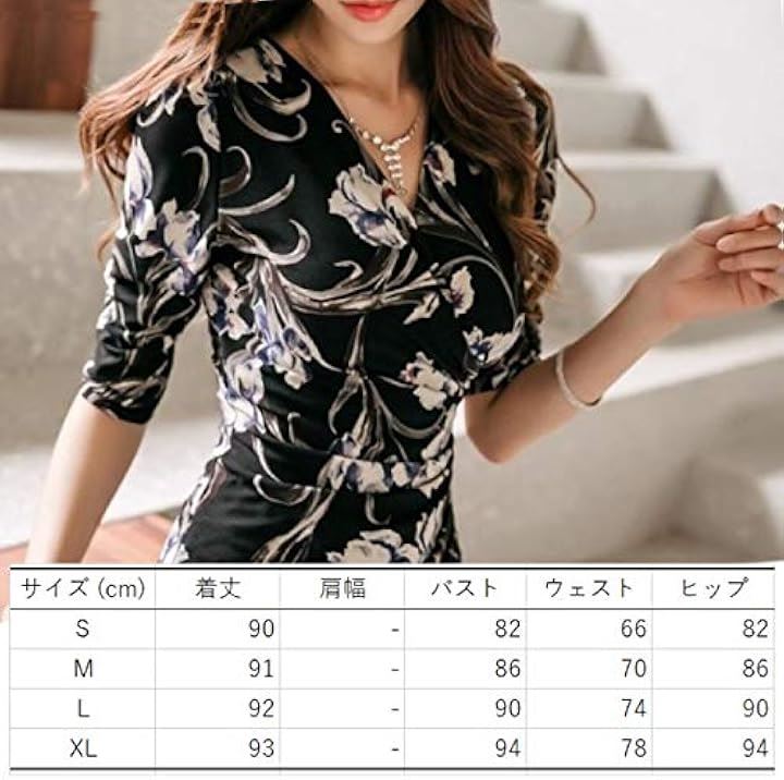 キャバドレス ミニドレス クラブドレス パーティードレス ワンピース タイト ミディ カシュクール 花柄 Vネック 五分袖 アシンメトリー スリット ひざ上 レディース
