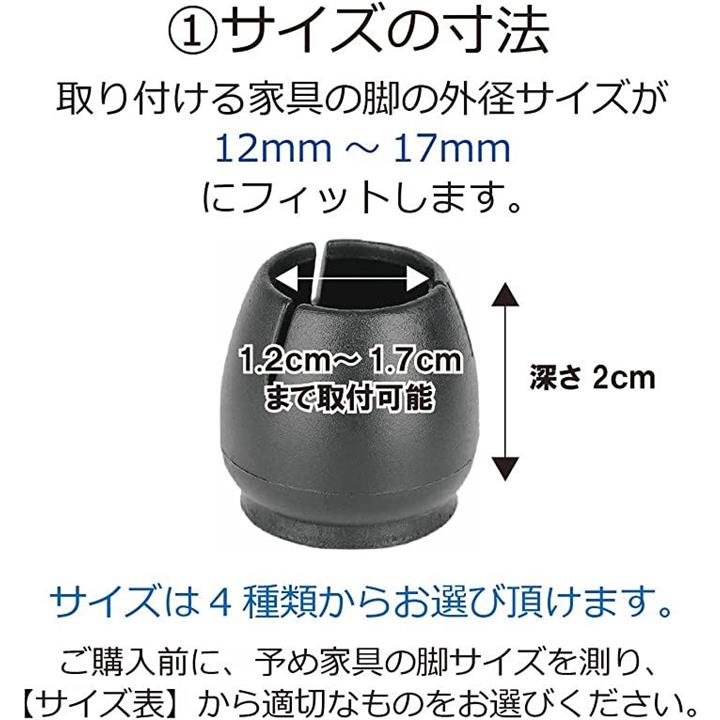 お使いの家具の脚のサイズを予めご確認のうえ、商品ページ先頭よりサイズをお選びください。