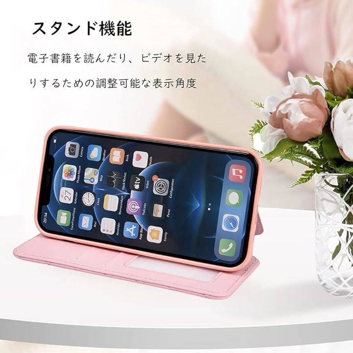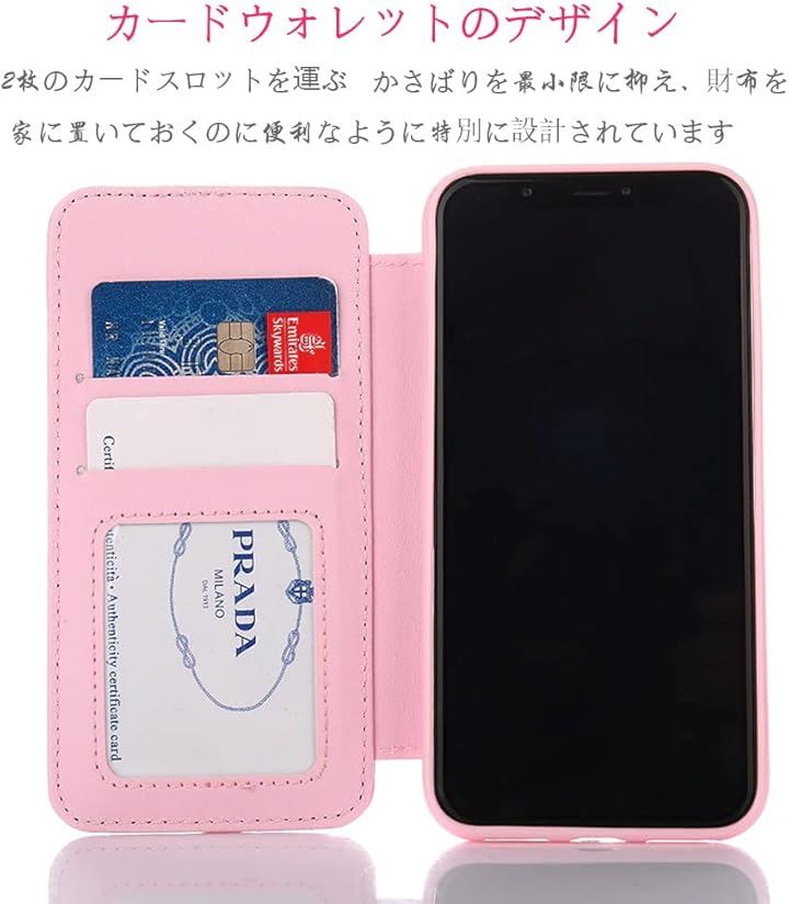 Samsung Galaxy ケース 手帳型 スマホケース カードポケット 収納ポケット 横置きスタンド機能 ピンク