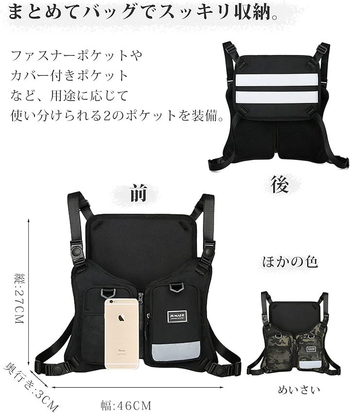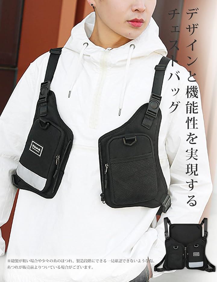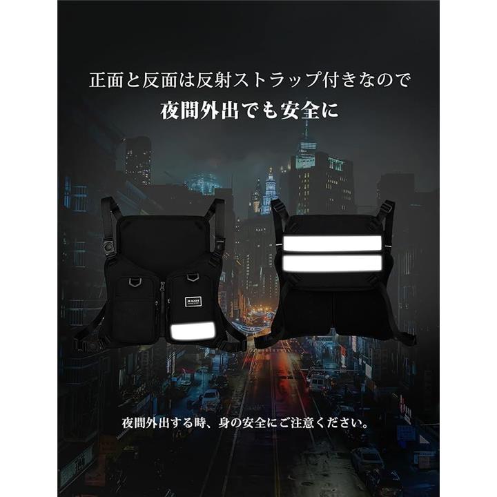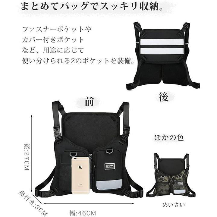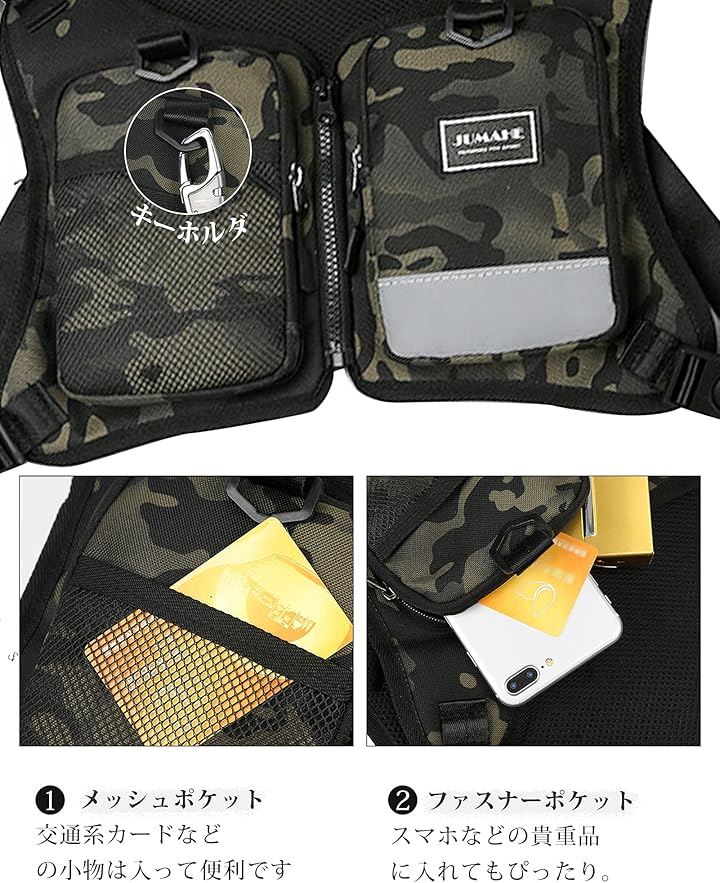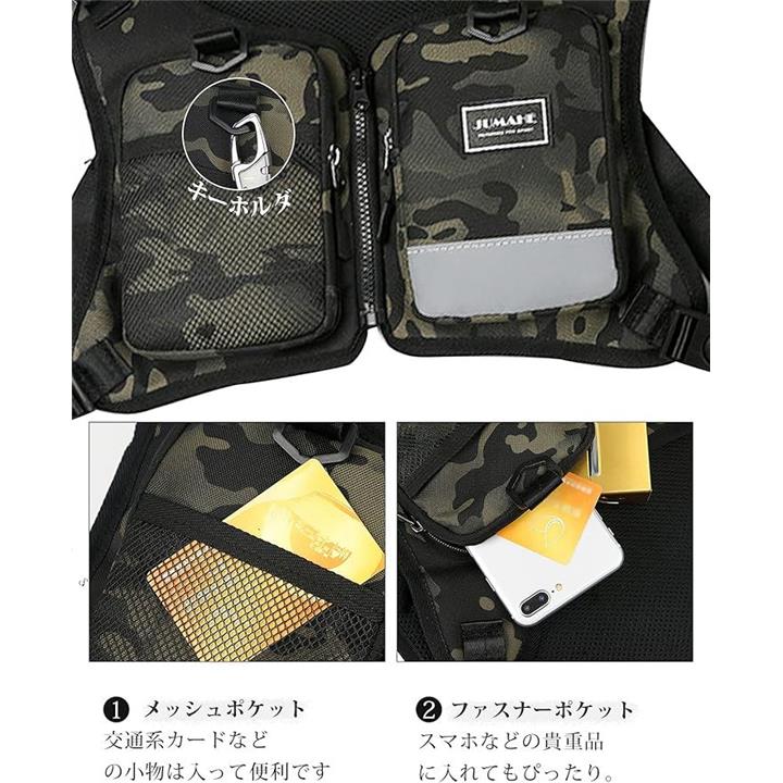 チェストバッグ ランニングバッグ フィッシング 着るリュック 登山 釣り スマホ 携帯収納 チェストリグ サバゲー 透気