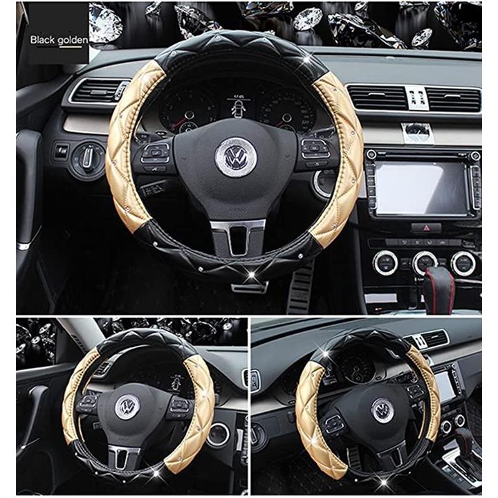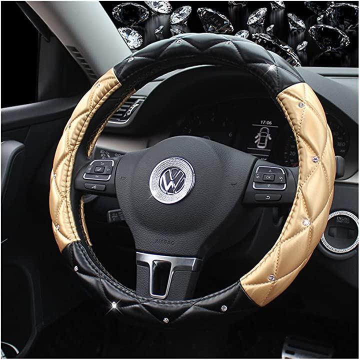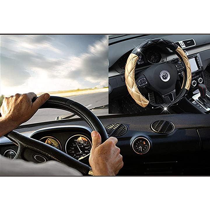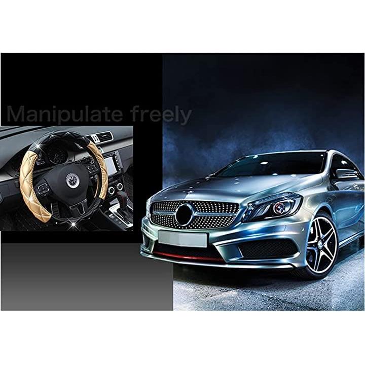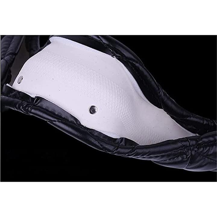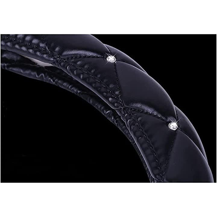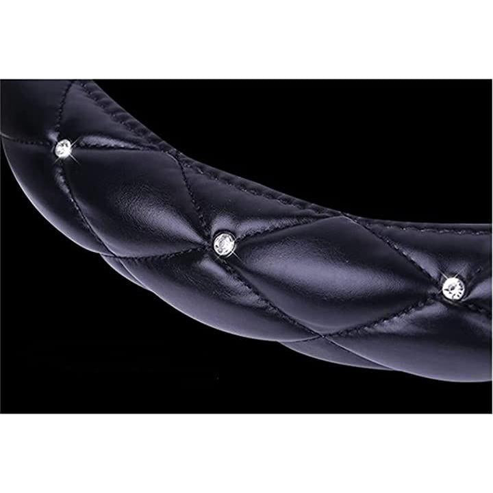 互換品ハンドルカバー 軽自動車 普通車 ステアリングカバー キルティング おしゃれ PUレザー 38cm 黒金
