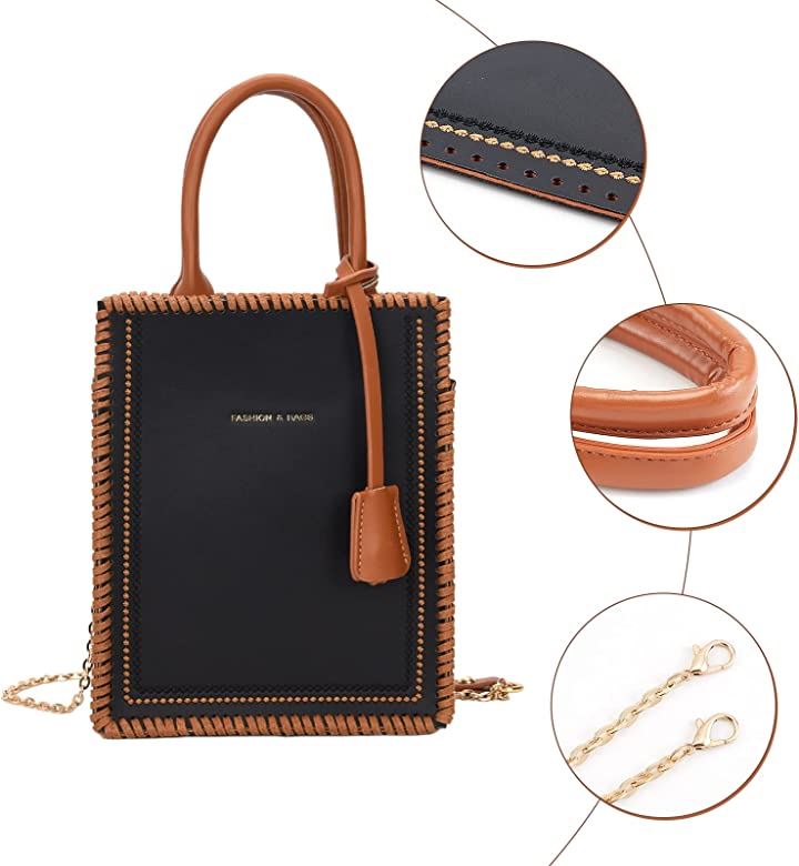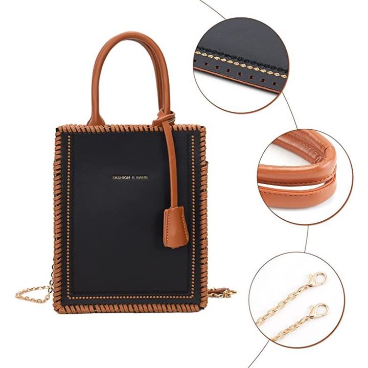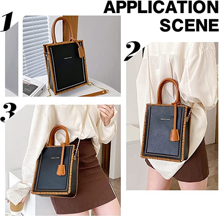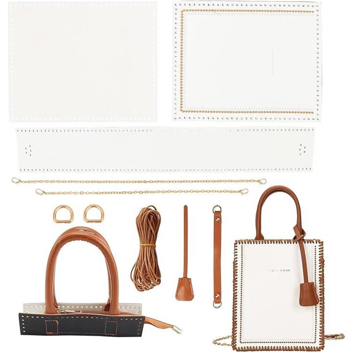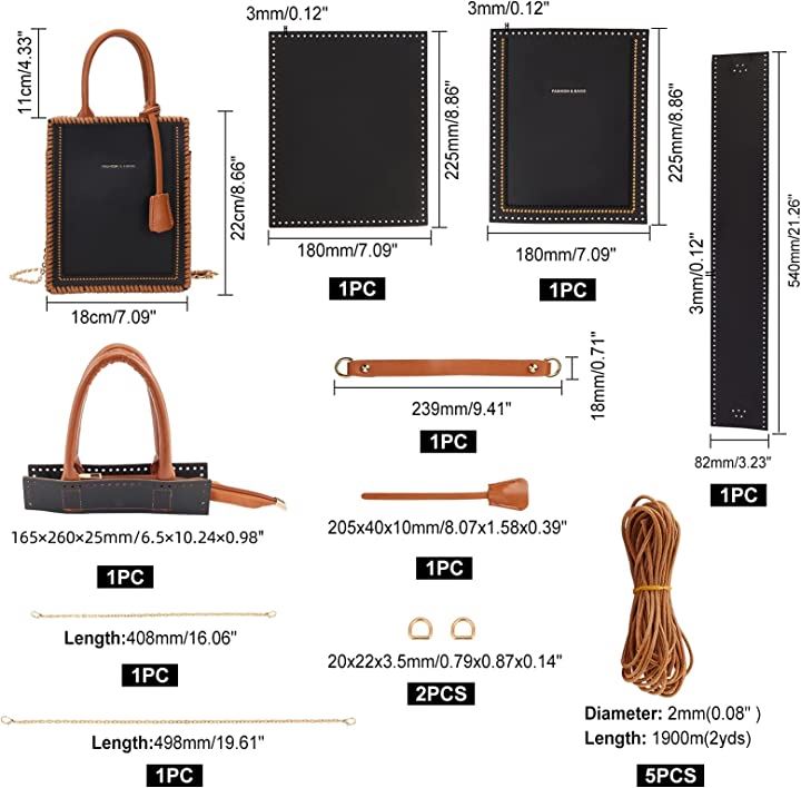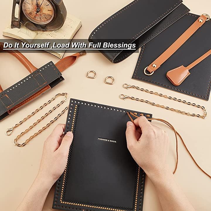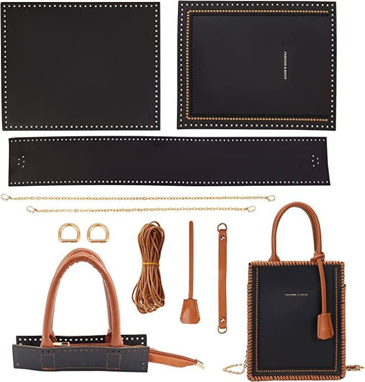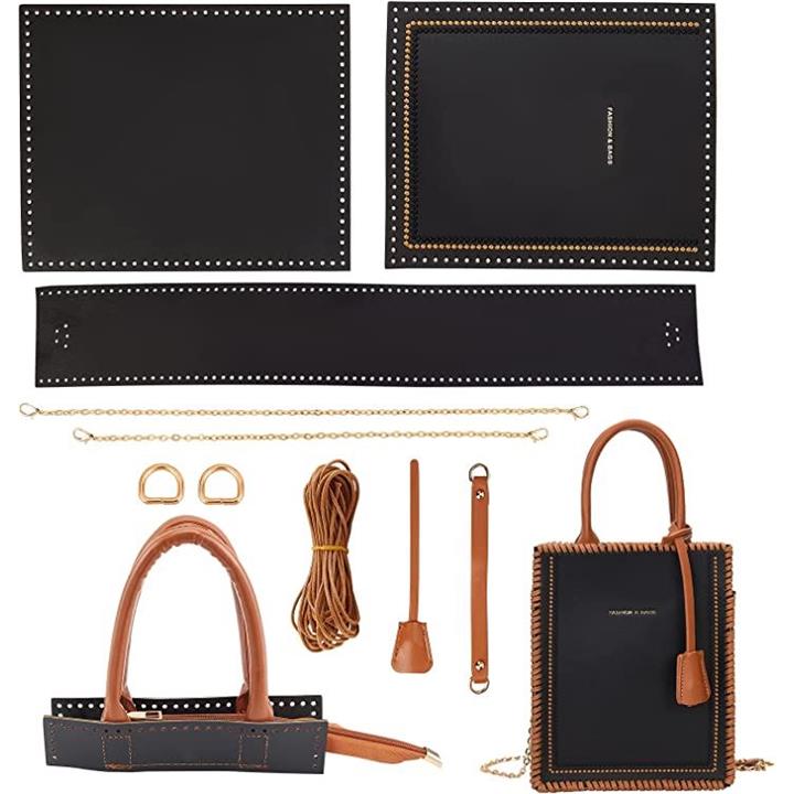 レザーニットかぎ針編みバッグメイキングキットDIYレザークラフトバッグ縫製素材ハンドバッグメイキング 18x22cm 黒