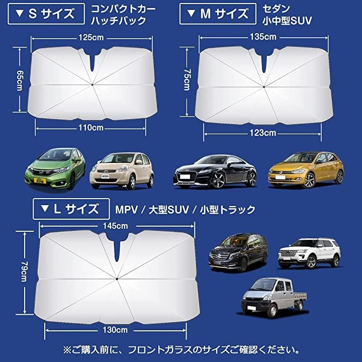 2022 車用 サンシェード 収納ポーチ付き L 79x145cm