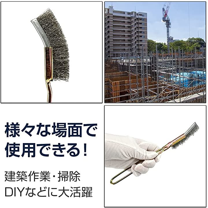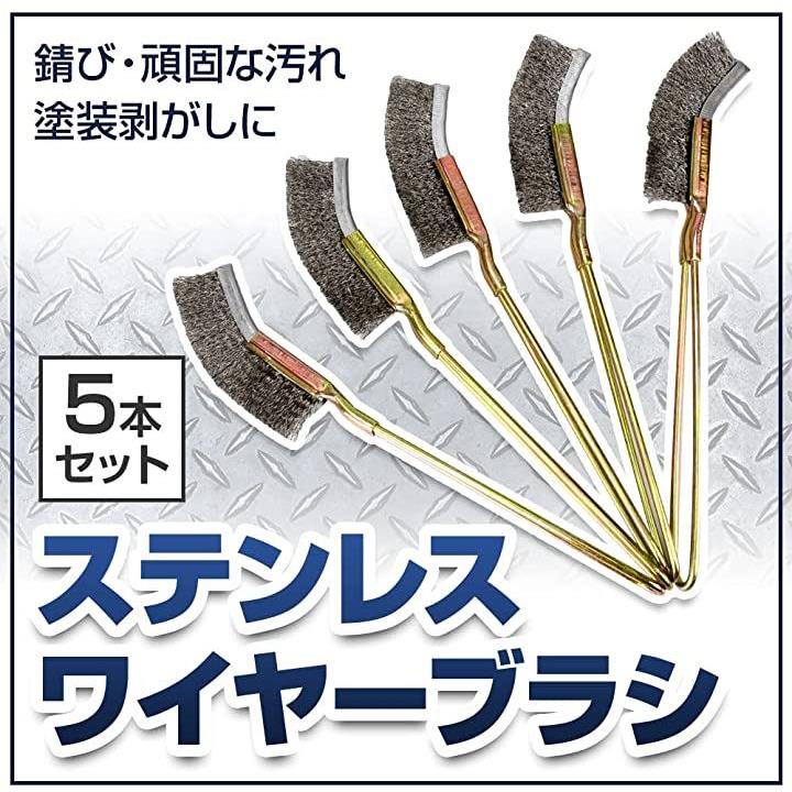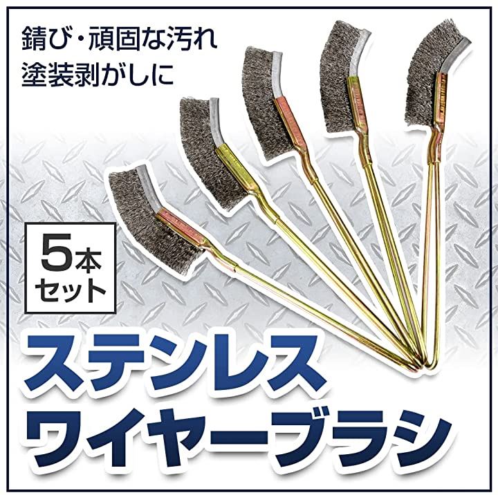 ワイヤーブラシ J型ブラシ 先曲がり 研磨作業 金属 工具 水回り 汚れ落とし サビ落とし 5本セット