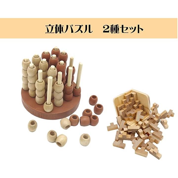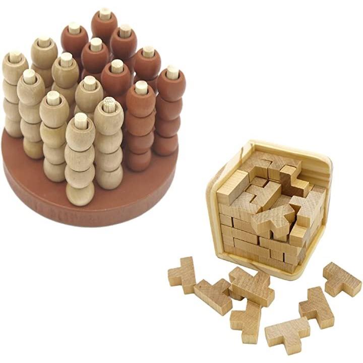 木製 立体パズル T型 ソーマキューブ と 立体4目並べ 脳トレ 2点セット