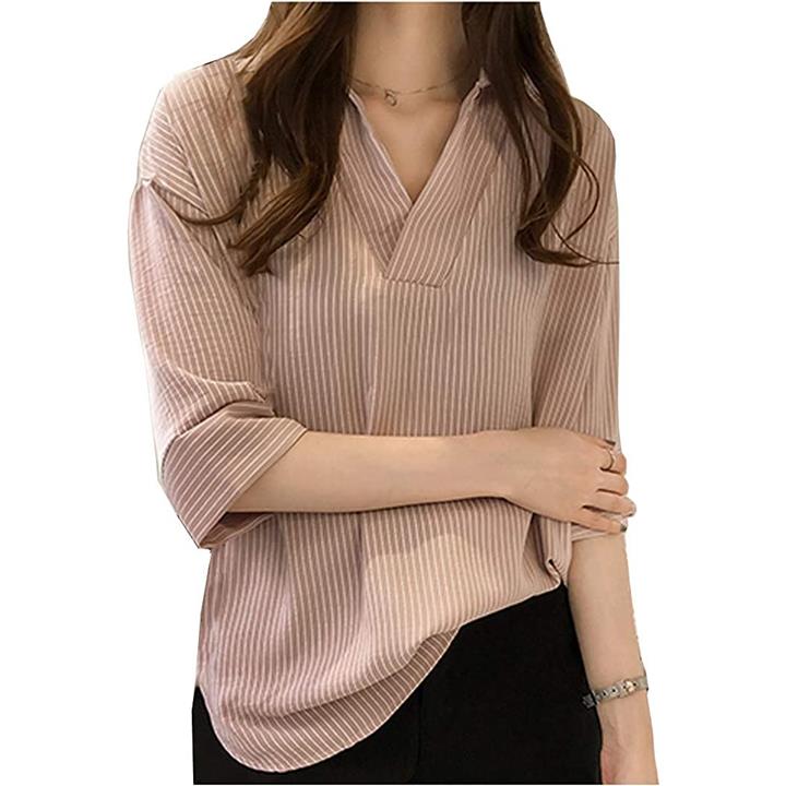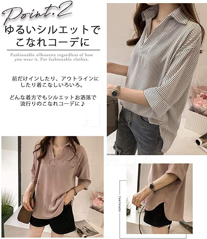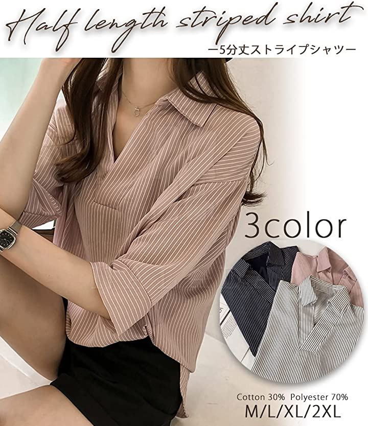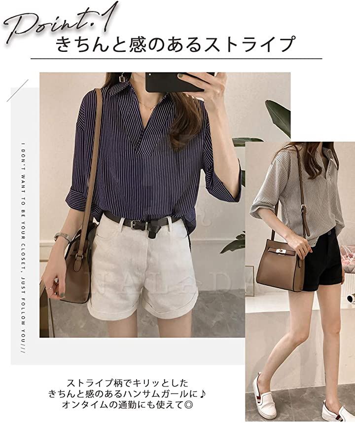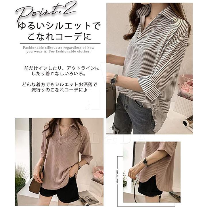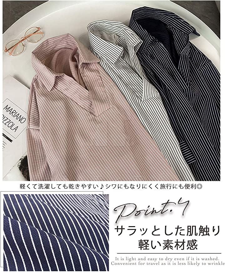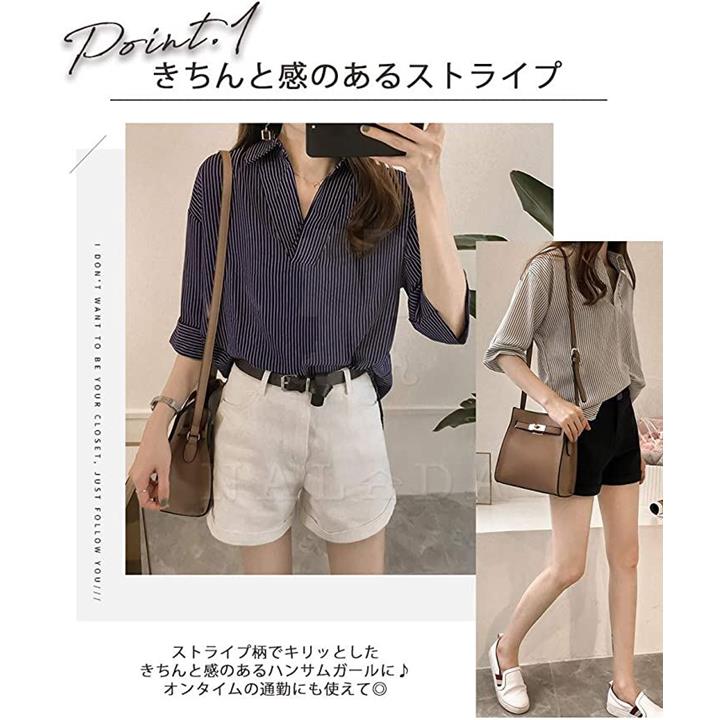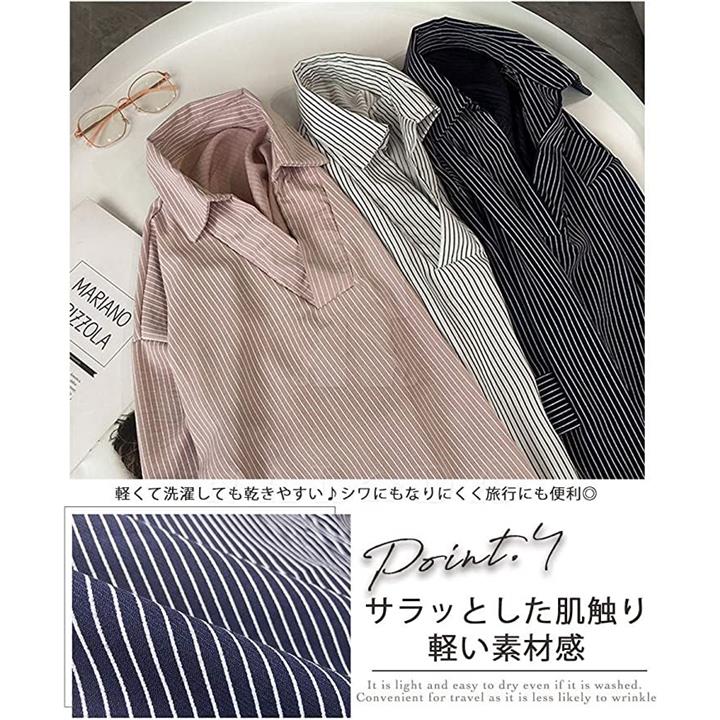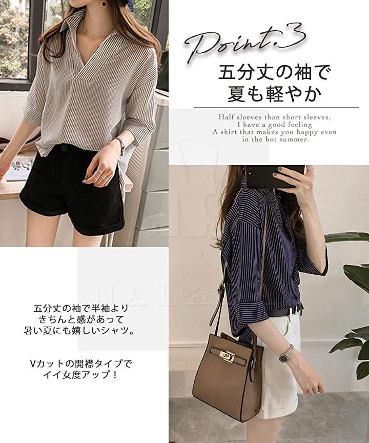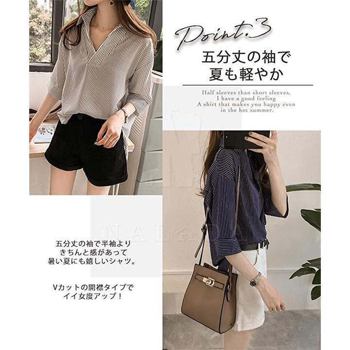 ナラダ ストライプシャツ お出かけ 通勤 お洒落 ブラウス 可愛い ファッション レディース