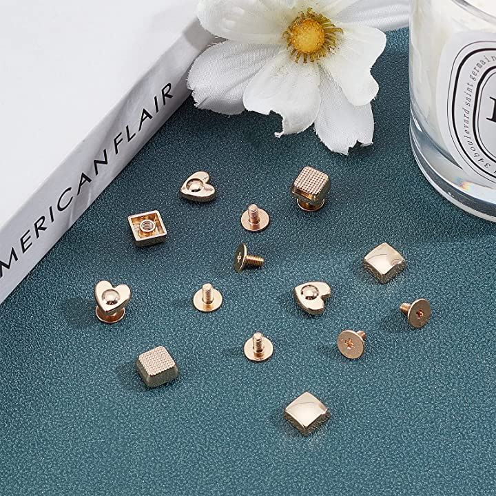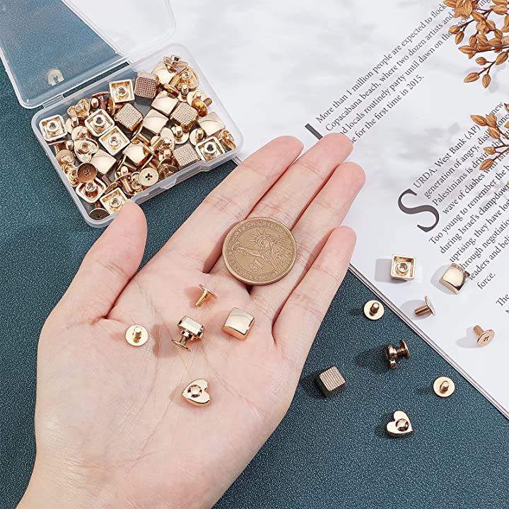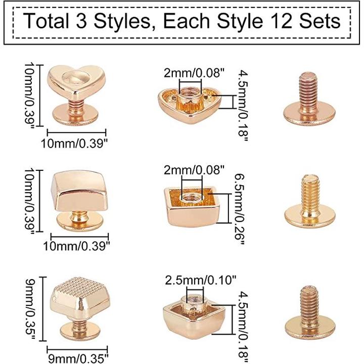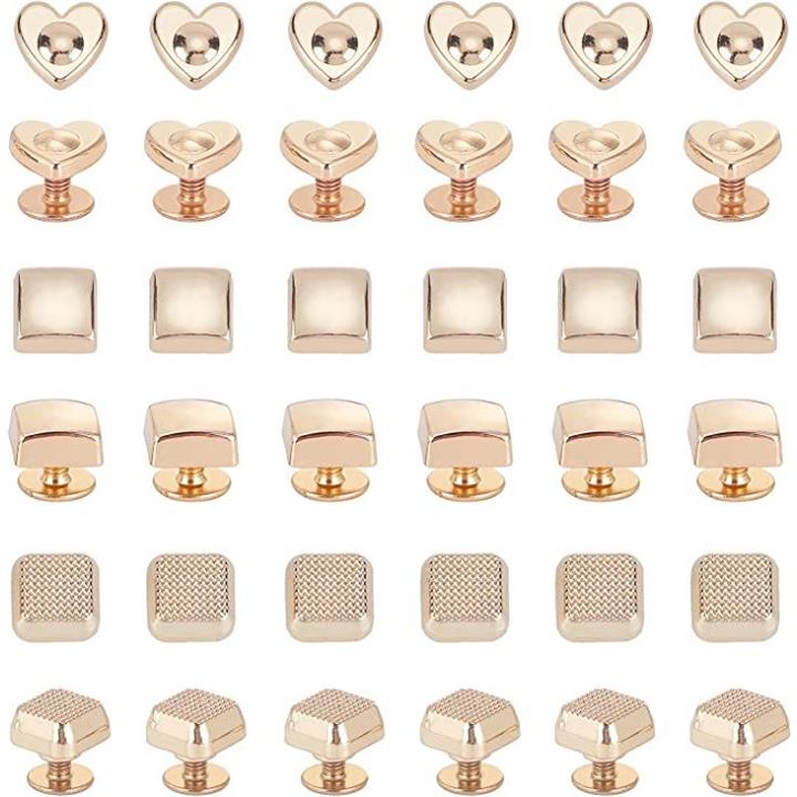 36組 3サイズ スタッズ リベット 鋲 丸型 ハート型 正方形 底鋲 ネジ式 カバン 修理 レザークラフト DIY ハンドメイド パーツ 9mm/10mm
