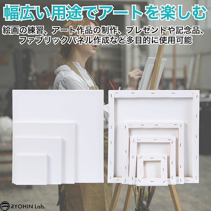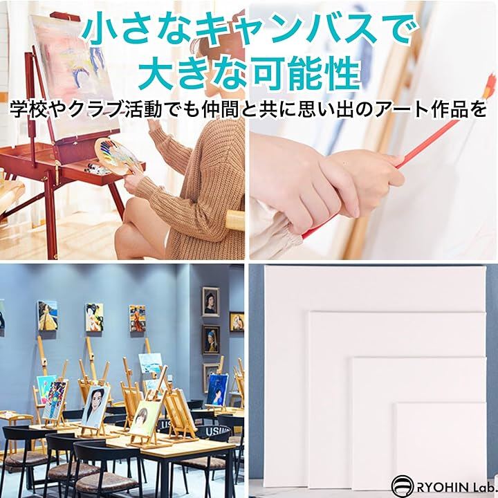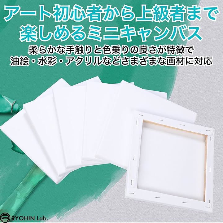 良品ラボ ミニキャンバス 正方形 キャンバスボード 画材 絵画 水彩画 油絵 美術 綿100% 6個セット