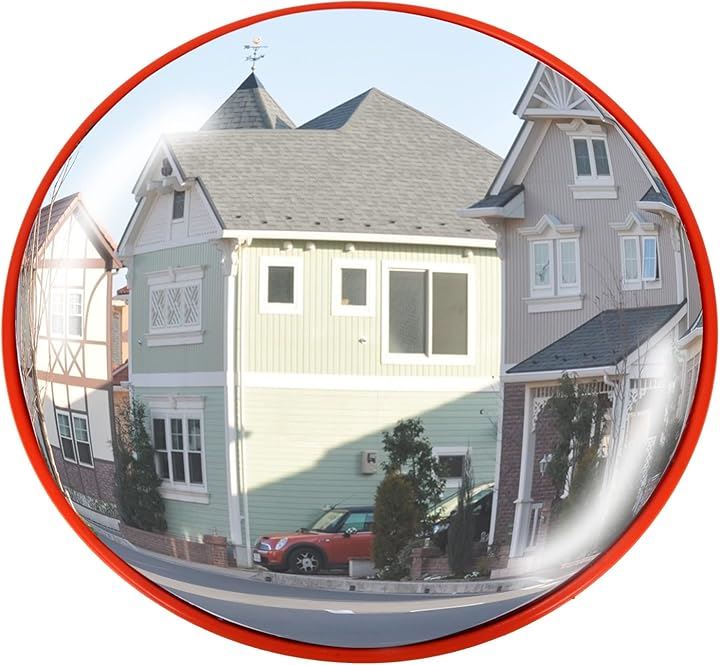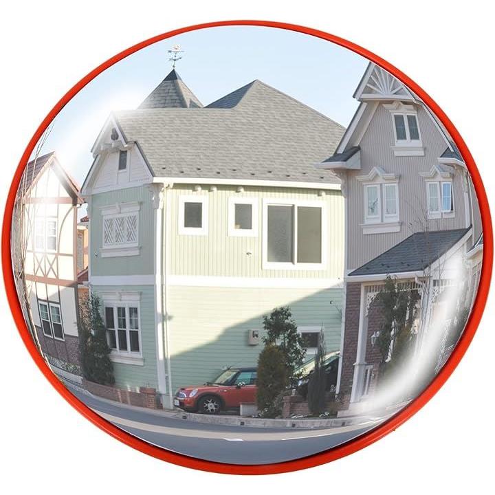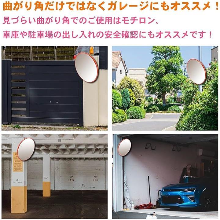 カーブミラー ガレージ 道路 曲がり角 安全確保 道路反射鏡 丸型 交通 交差点 車 バイク 歩行者 対策 事故防止 駐車場 車庫 死角 路地