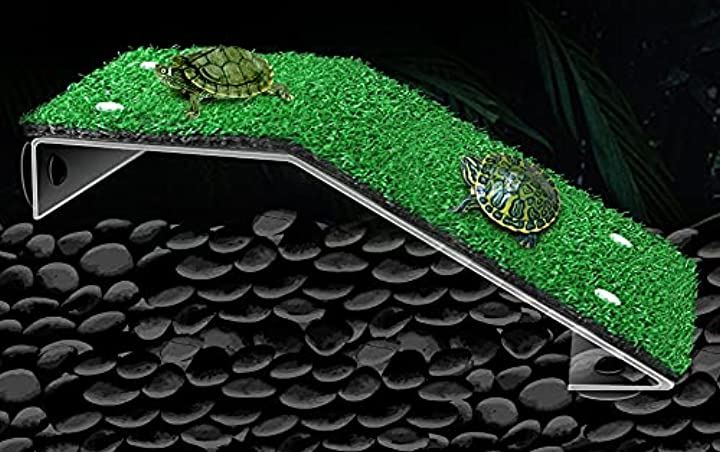 亀 カメ はしご 台 浮島 水槽 飼育 人工芝 休憩 インテリア 亀の水槽