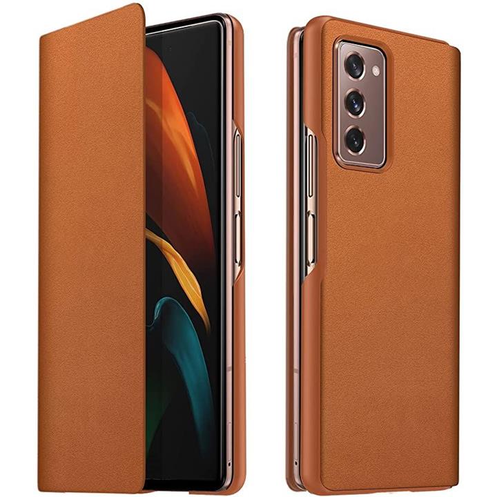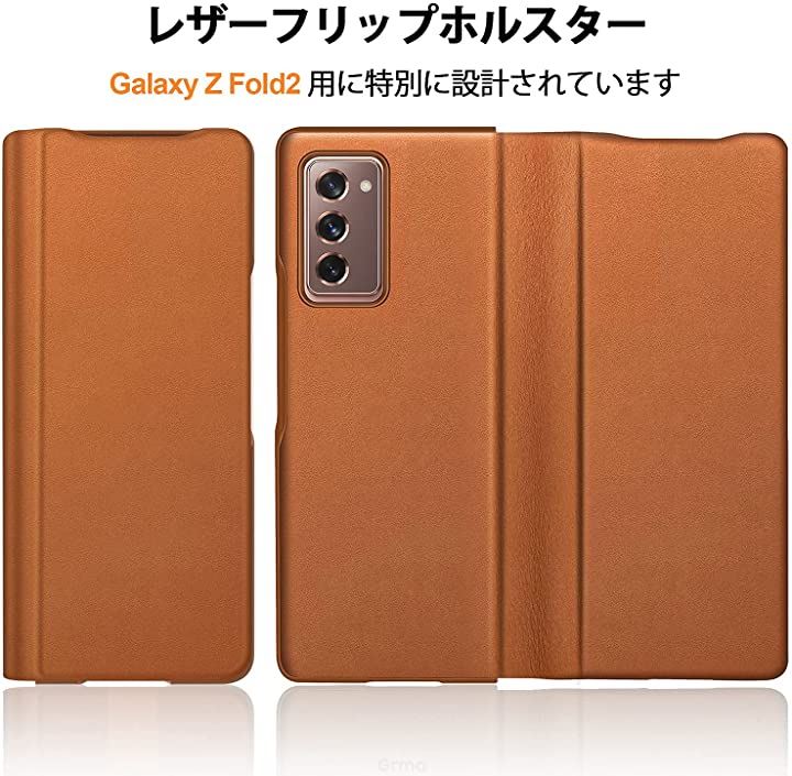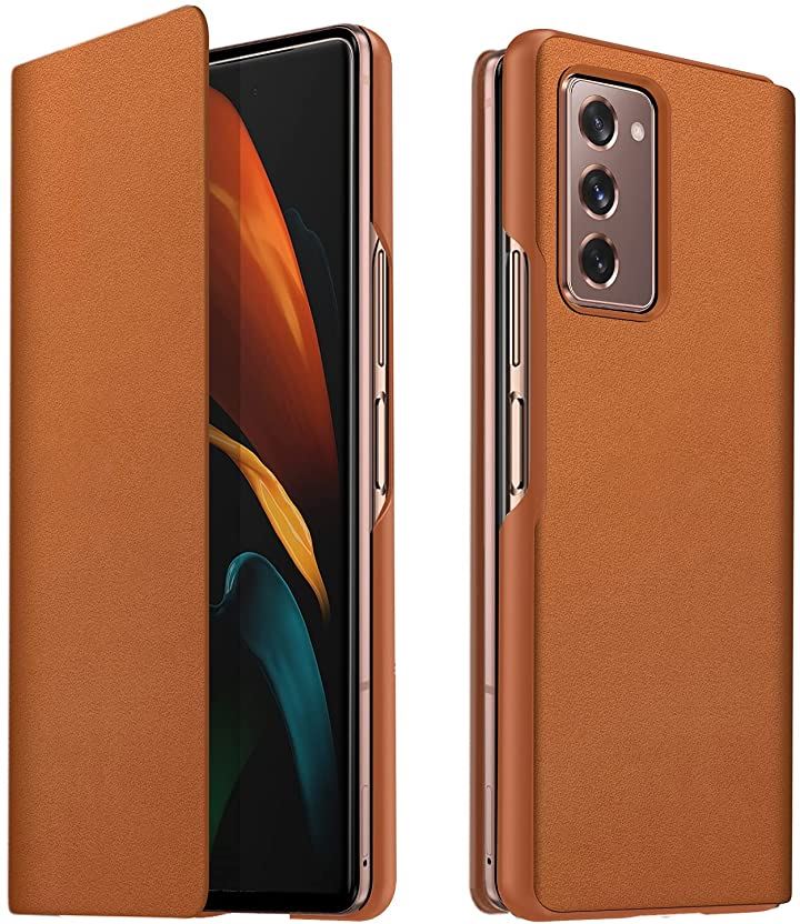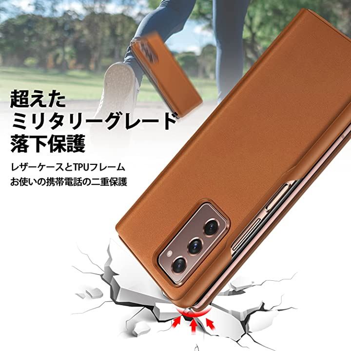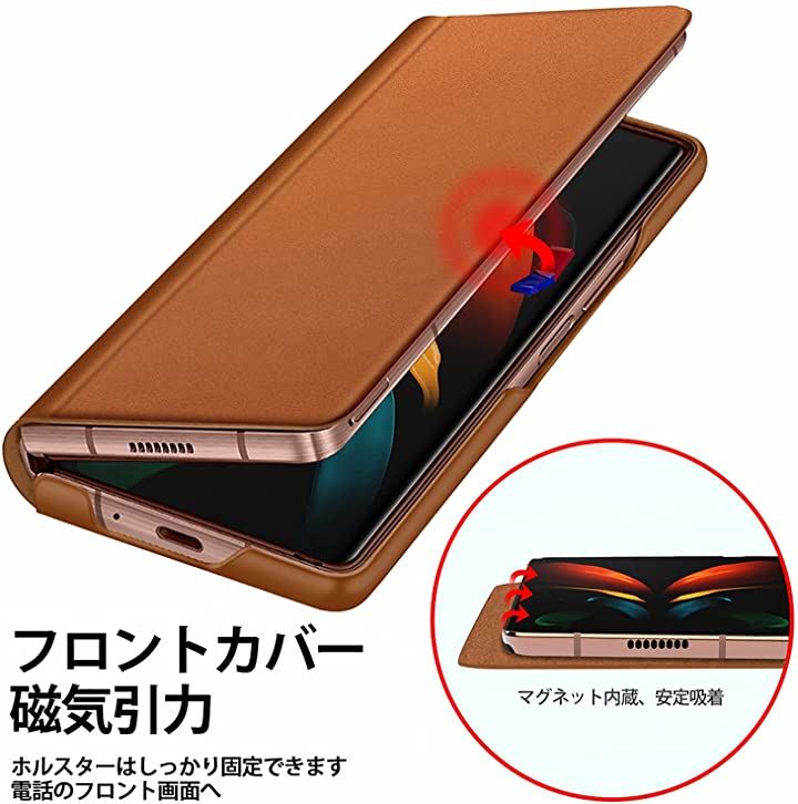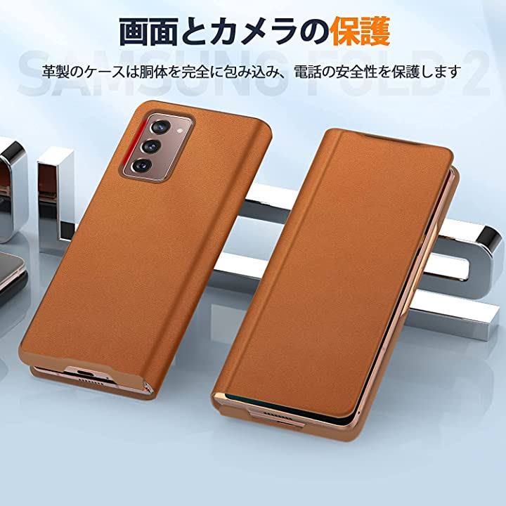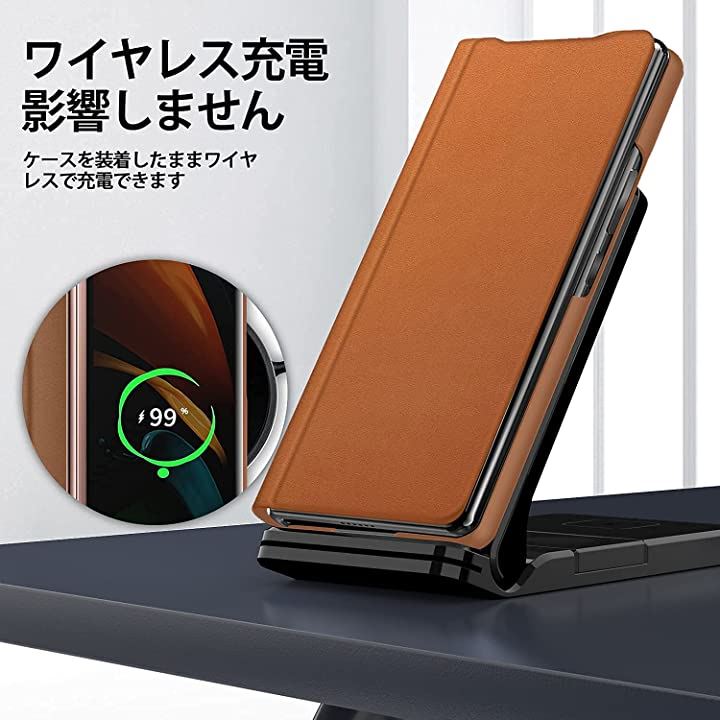 SamSung galaxy fold 2 対応 超薄型レザー 手帳型皮革 携帯カバー 軽量 ワイヤレス充電対応 ブラウン