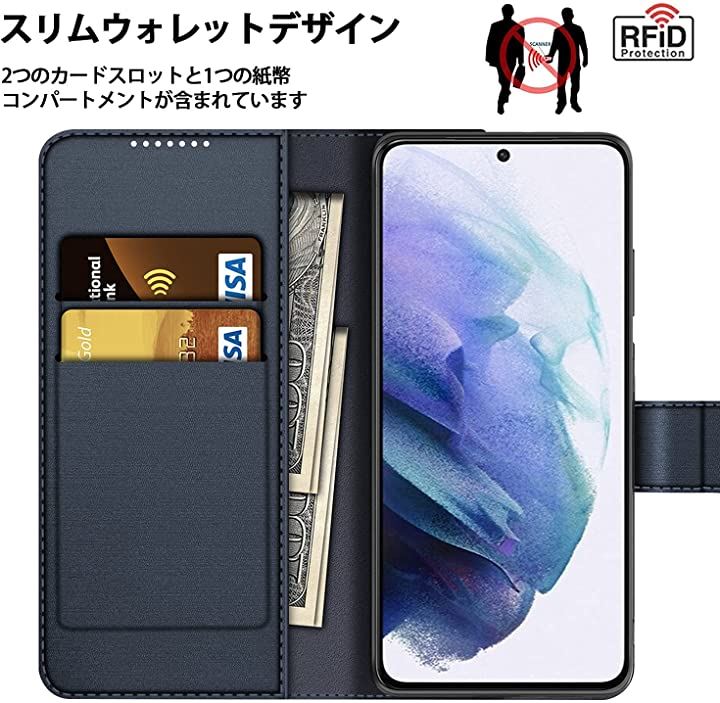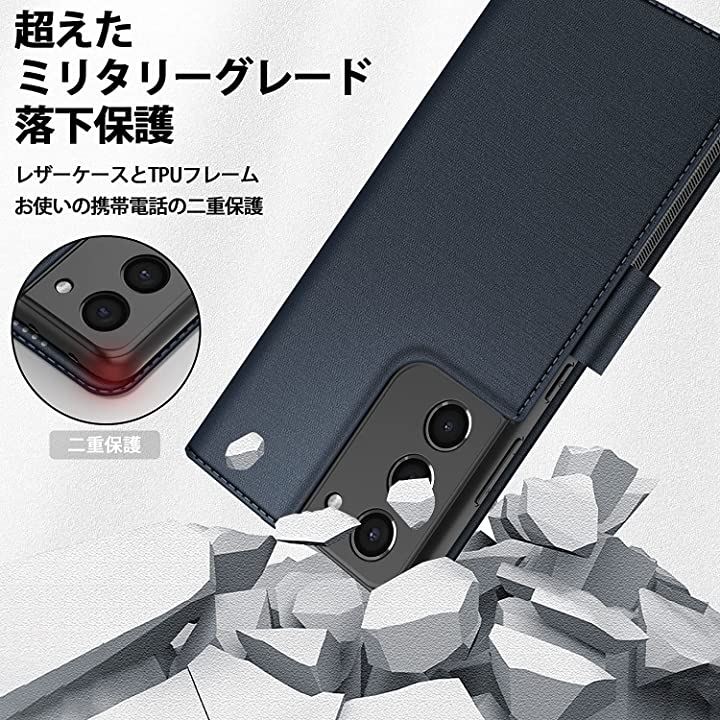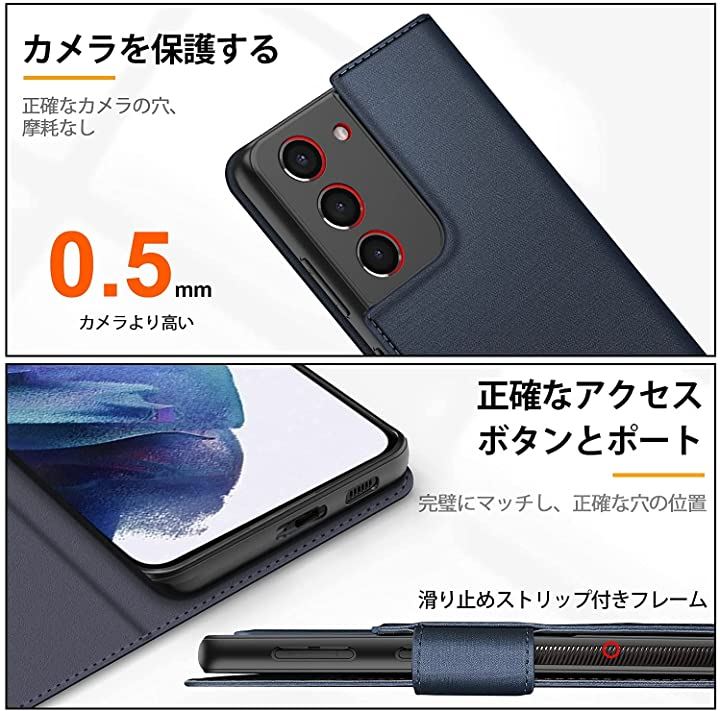 S21 plus 5G ケース カバー カメラ 全面保護 手帳型 ブルー