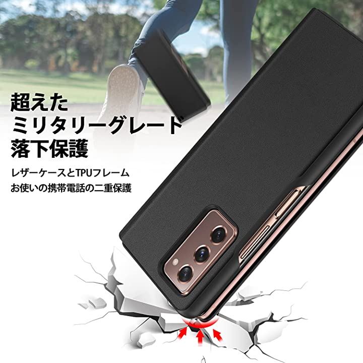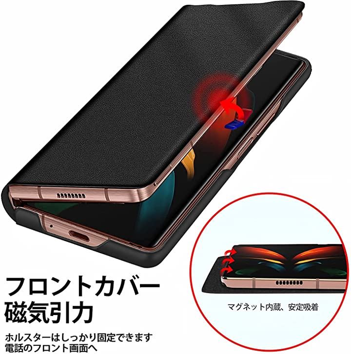 SamSung Galaxy fold 2ケースレザー 手帳型 スマホケース 黒