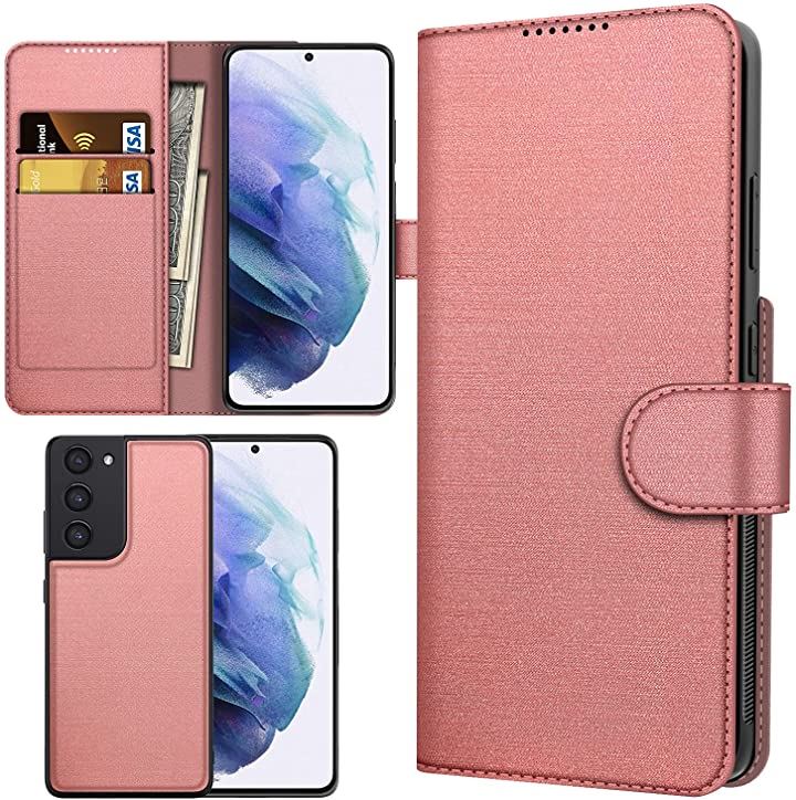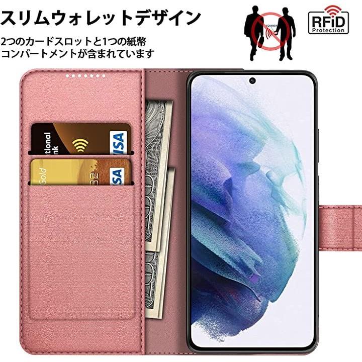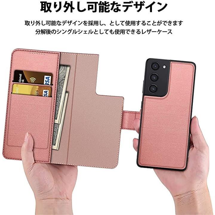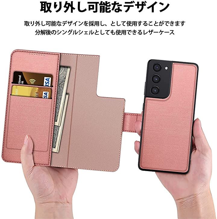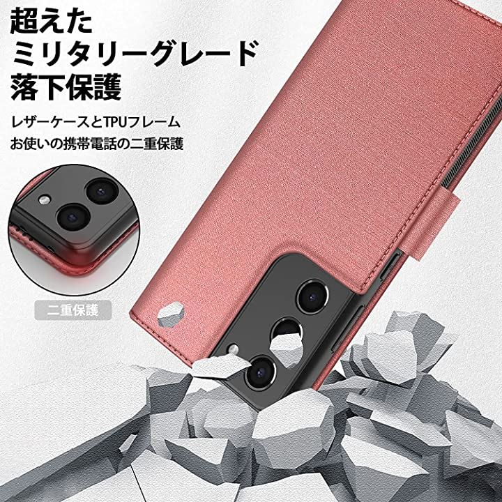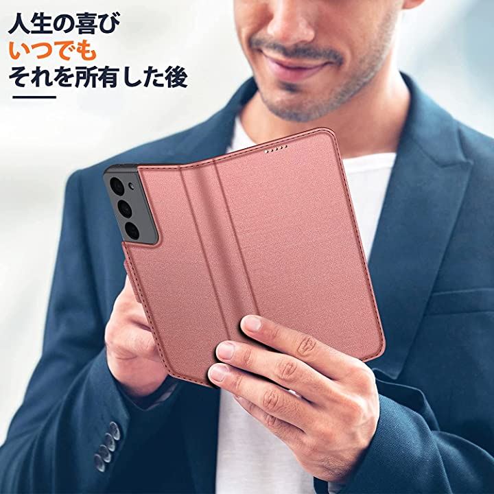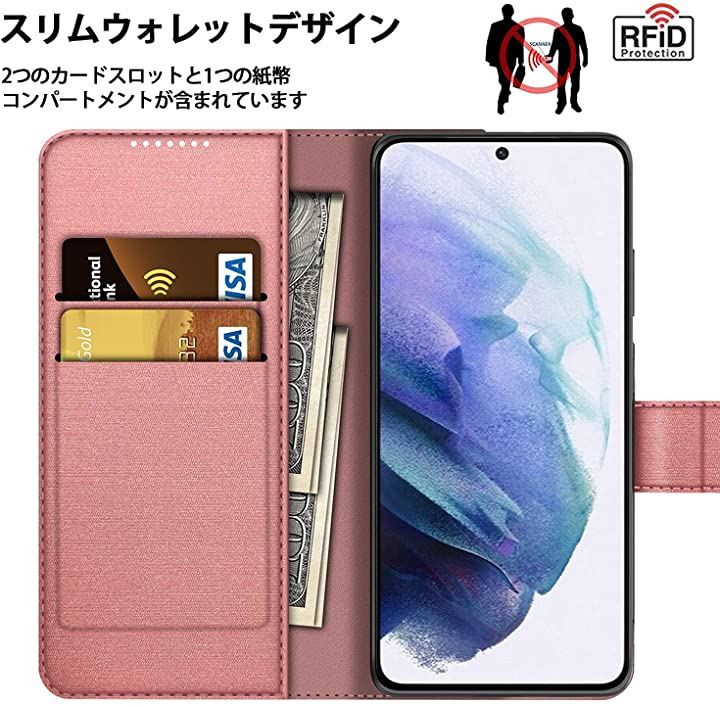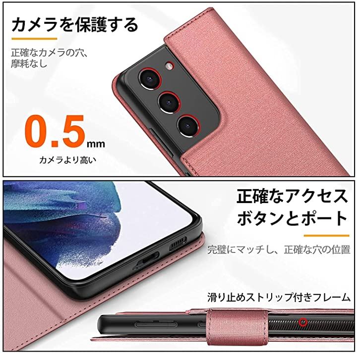 S21 plus 5G ケース カバー カメラ 全面保護 手帳型 ローズゴールド