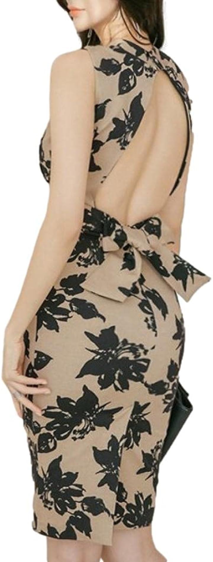 オープンバック ワンピース ボタニカル タイトミニ クルーネック ノースリーブ リボン スリット クラブドレス レディース DB3 エロイサ