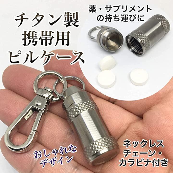 薬ケース チタン製 サプリメントケース 携帯用 ピルケース おしゃれ 防水 カラビナ チェーン付き